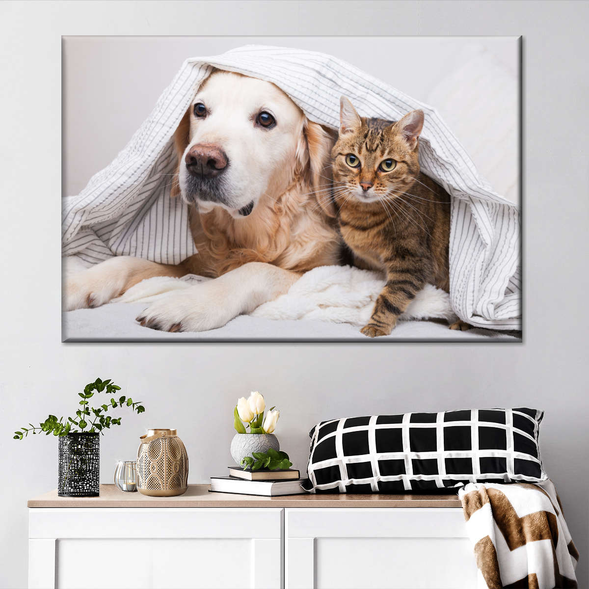 Cozy Dog And Cat Wall Art will easily beautify any room. Bring this stunning art of your favorite animal into your home to set a positive tone to the entire space.
