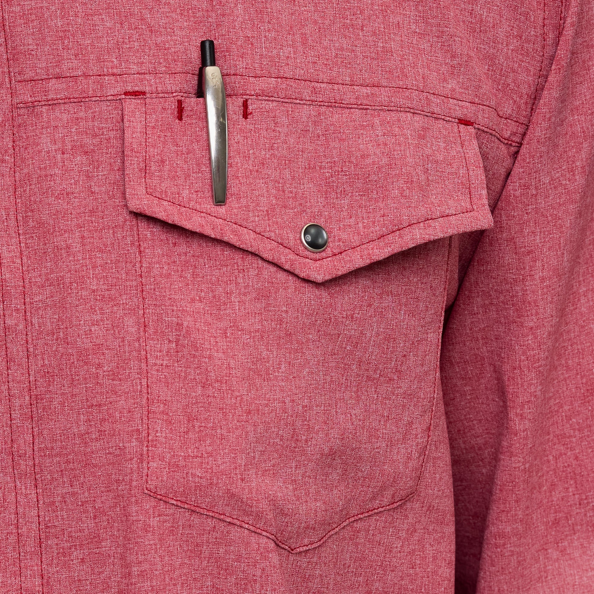As sweat drips down the brow of the man built by hard work, this shirt stands ready to perform. Wrinkle and stain-resistant, moisture will not hinder your grind as this shirt blends practicality with style. The pearl snap chest pockets and western yoke are nods to a storied past of cowboys and open ranges, while mesh-lined vertical vents and UPF 50+ protection cater to the principles of hard work and adventure still alive the fabric of America.
