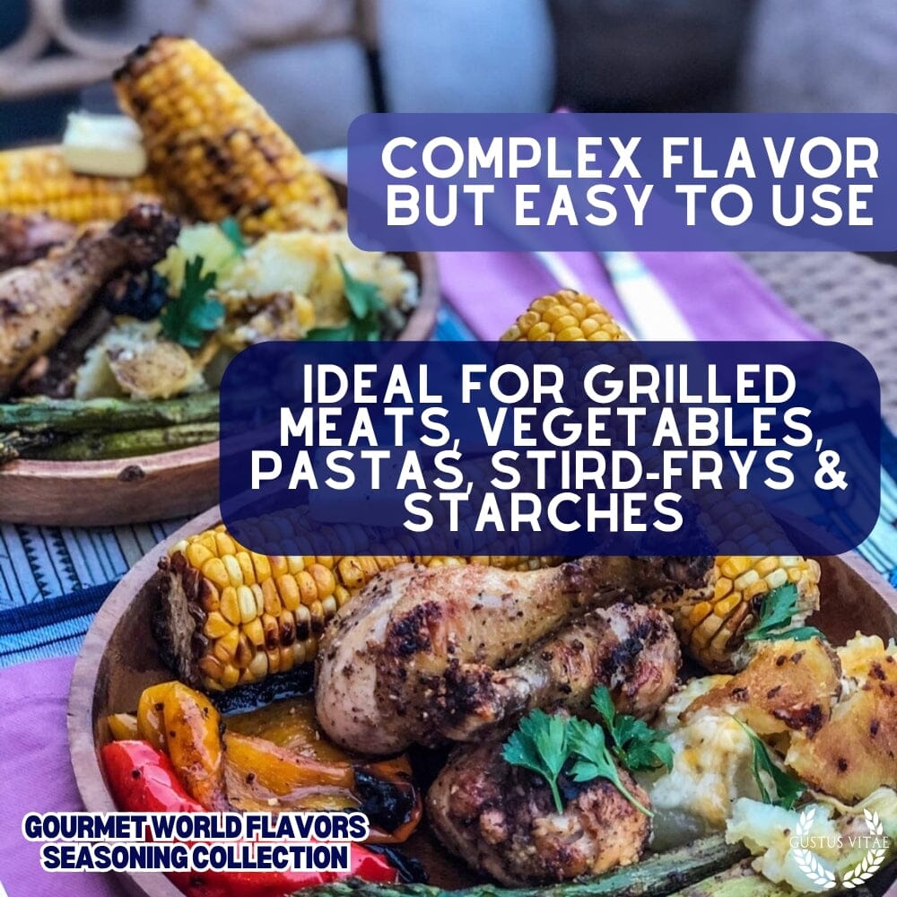 Unleash authentic flavors from all over the world with our gourmet 6 pack collection of artisanal seasonings and spice blends. We've captured the essence of some of the most rich and storied cuisines of the world: Thailand, Jamaica, Morocco, Tuscany, Cajun, and Greece.