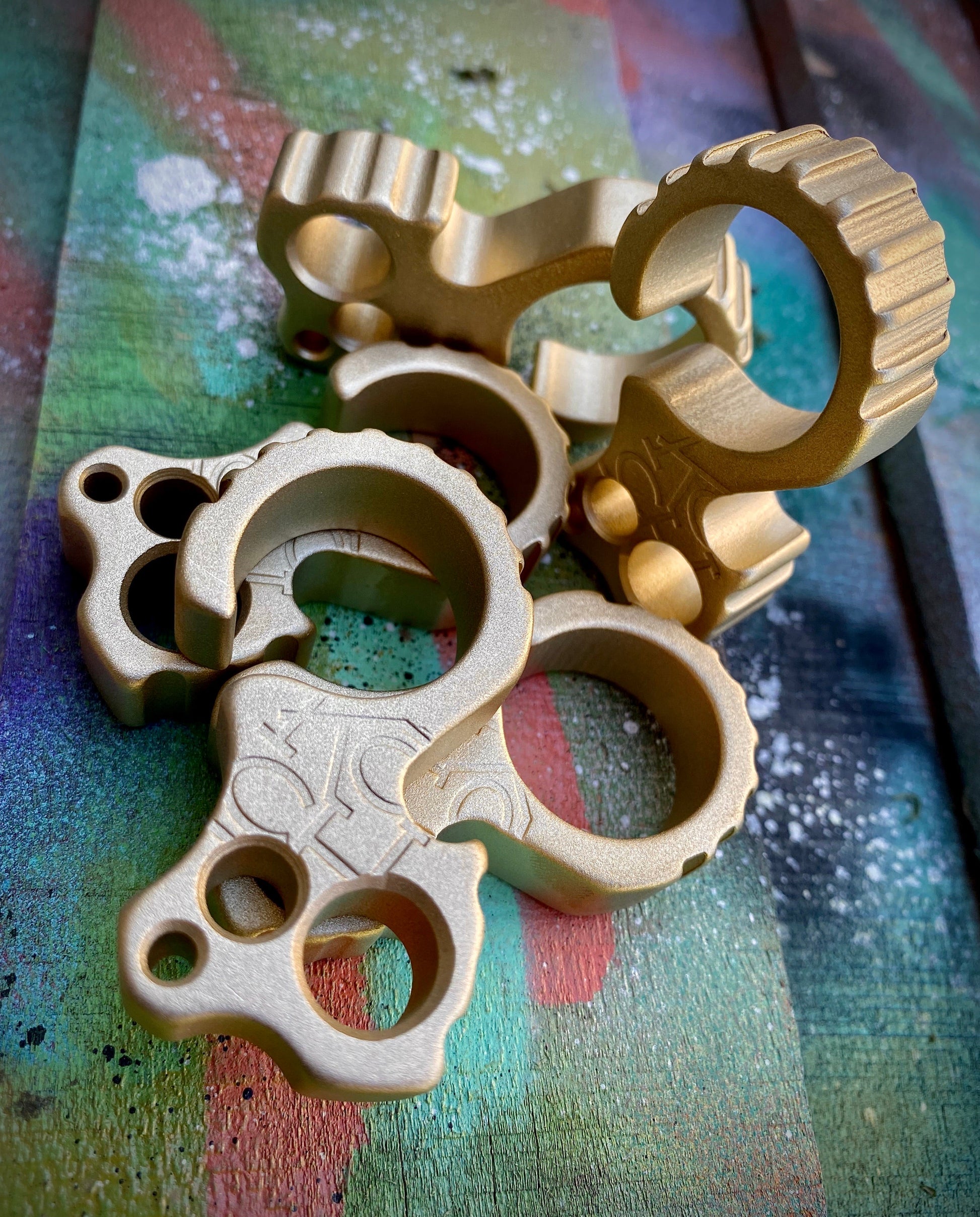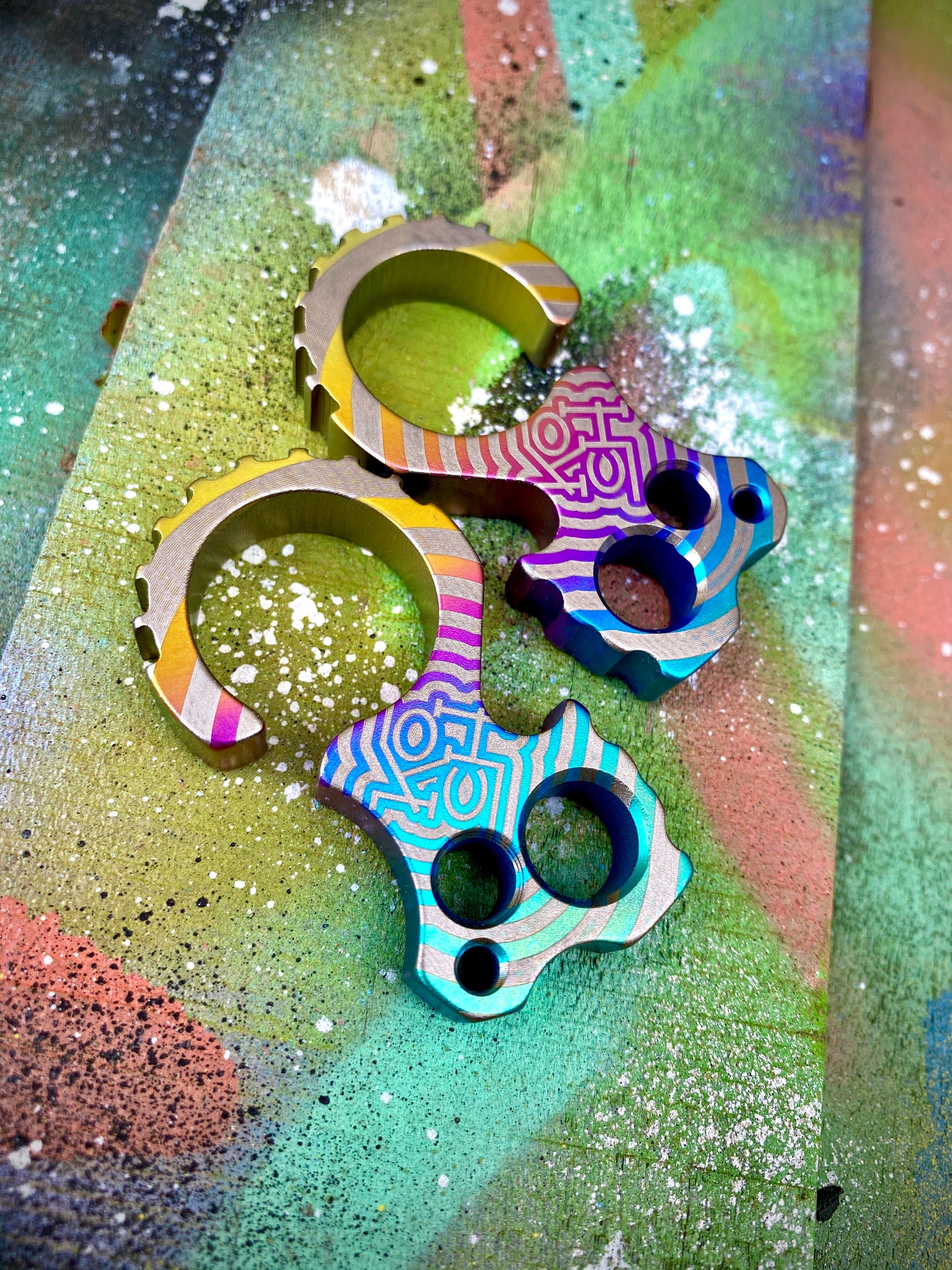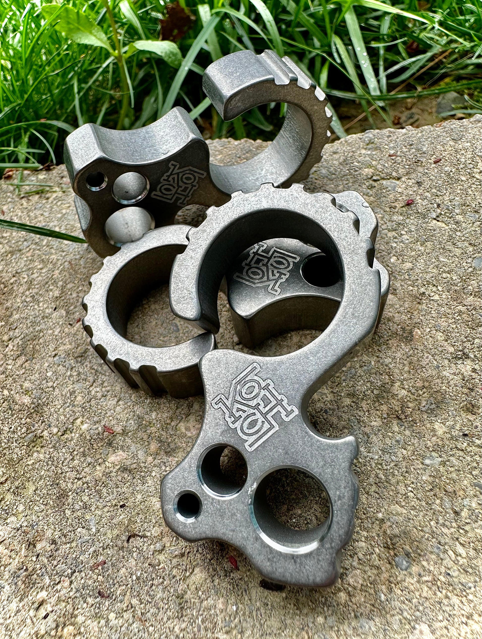 This EDC Keychain / pocket tool is waterjet cut from various materials, stonewashed and available in various finishes stamped with my logo. It can be used as a dangler loop, bottle opener, and just about anything else you think this little fella
