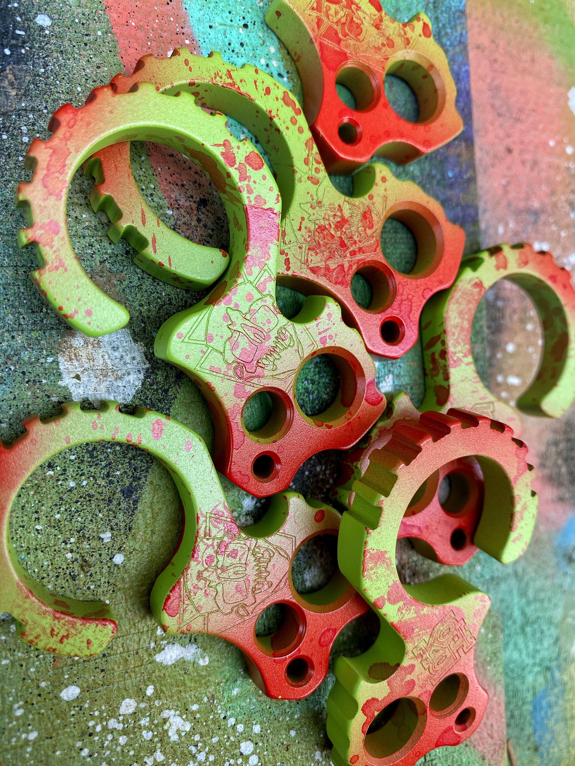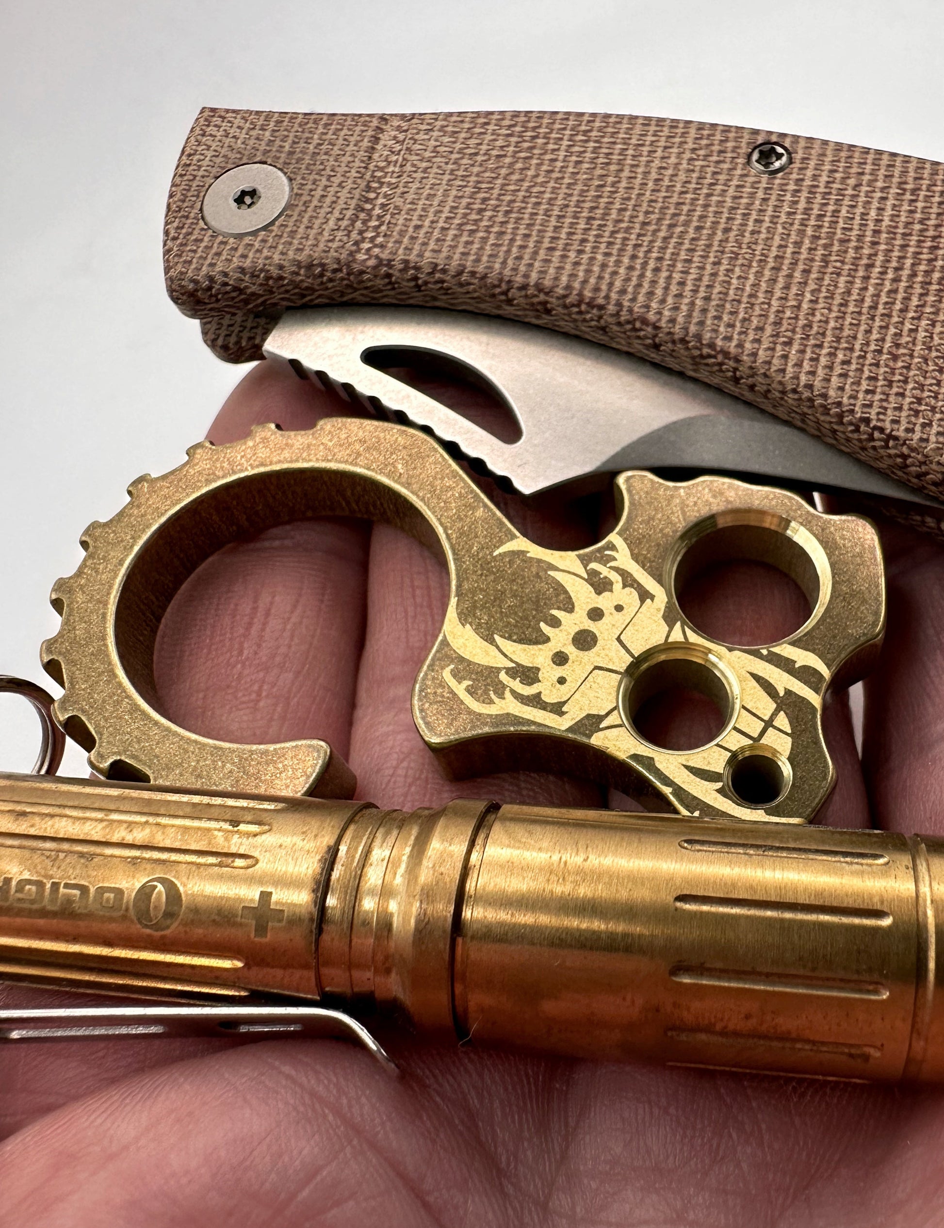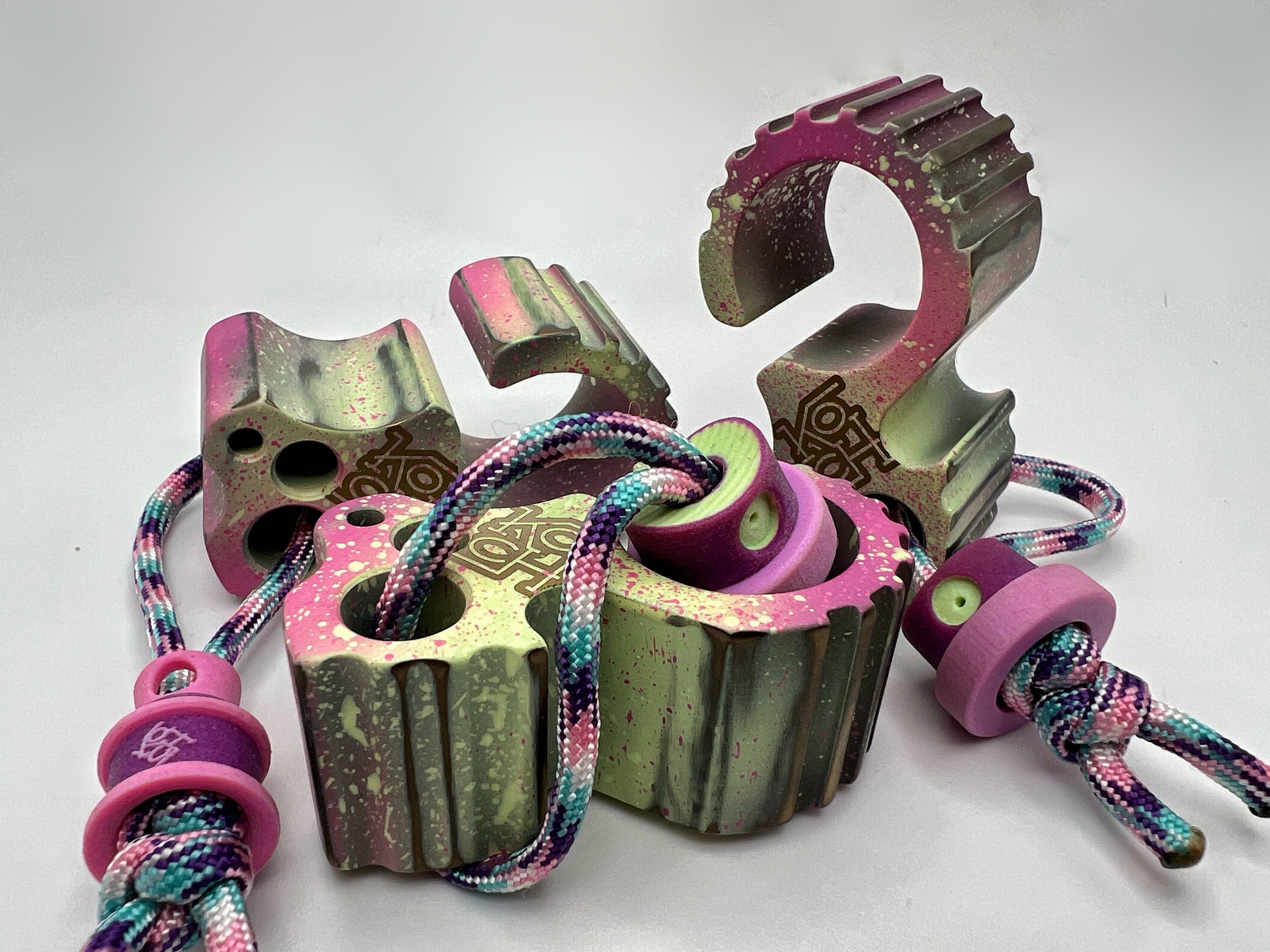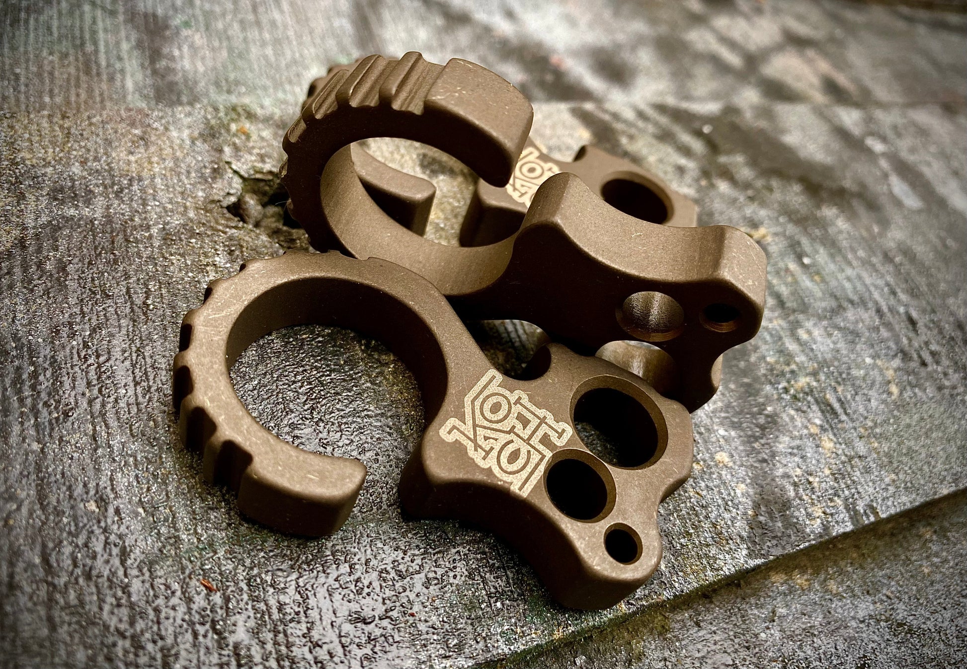 This EDC Keychain / pocket tool is waterjet cut from various materials, stonewashed and available in various finishes stamped with my logo. It can be used as a dangler loop, bottle opener, and just about anything else you think this little fella