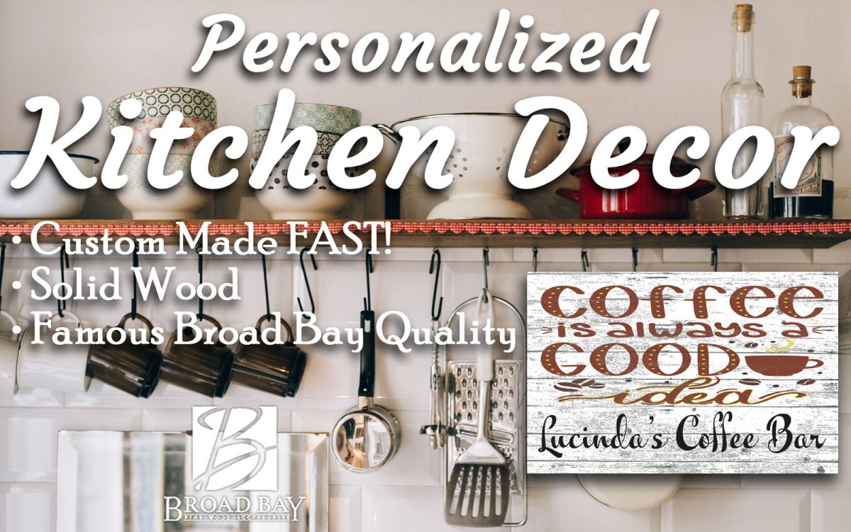 This unique Broad Bay customized coffee sign makes a great birthday, holiday, or anniversary gift. Perfect for kitchen or coffee bar decor or a housewarming present. Broad Bay only uses solid wood for the highest quality home decor signs. Custom created daily in Virginia Beach, our signs feature our unique Fresco Print process that actually embeds your design into the surface of the solid wood sign for a long lasting and vibrant appearance. Personalized fast, our customized signs make the perfect gift for a man, woman, family or couple!