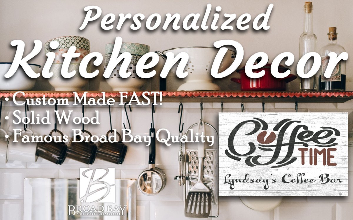 These unique farmhouse-style customized coffee sign makes a great birthday, holiday, or anniversary gift. Perfect for kitchen, coffee bar, or home office decor. Broad Bay only uses solid wood for the highest quality home decor signs. Custom created daily in Virginia Beach, our signs feature our unique Fresco Print process that actually embeds your design into the surface of the solid wood sign for a long lasting and vibrant appearance. Personalized fast, our customized signs make the perfect gift for a man, woman, family or couple!