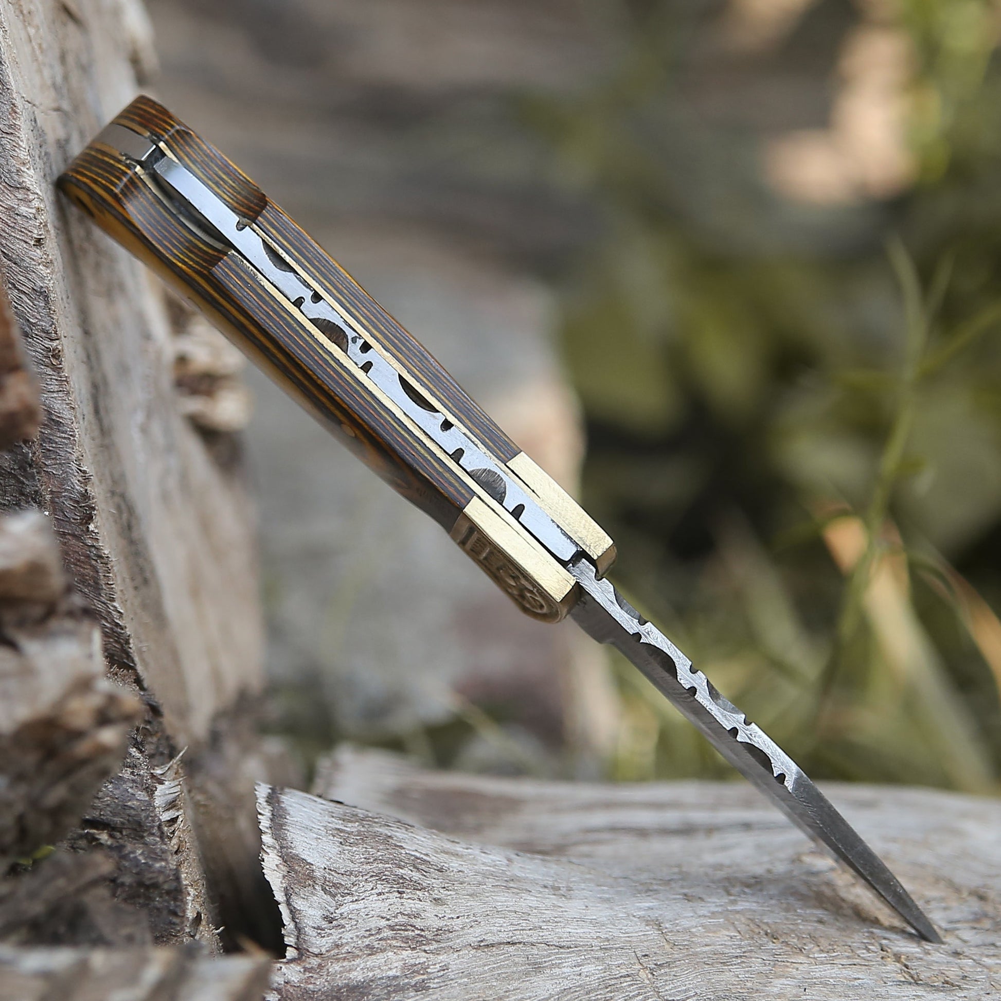 Custom Hand Forged Damascus Folding Knife Stain Wood Handle With Engraved Bolster WH 1557