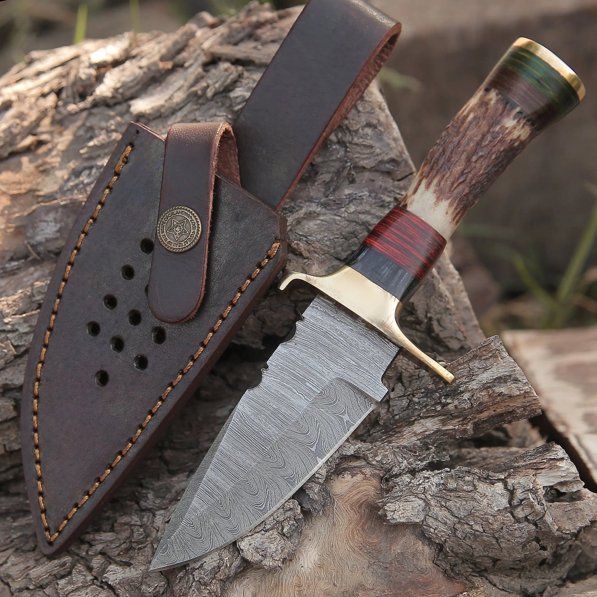 CUSTOM HAND FORGED DAMASCUS STEEL HUNTING KNIFE & COME WITH PURE LEATHER SHEATH