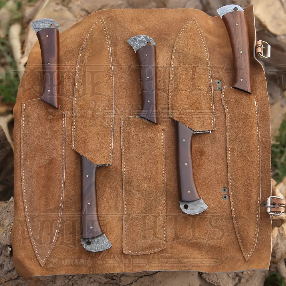 Custom Hand Made Forged Damascus Steel Chef Knife Set Kitchen Knives