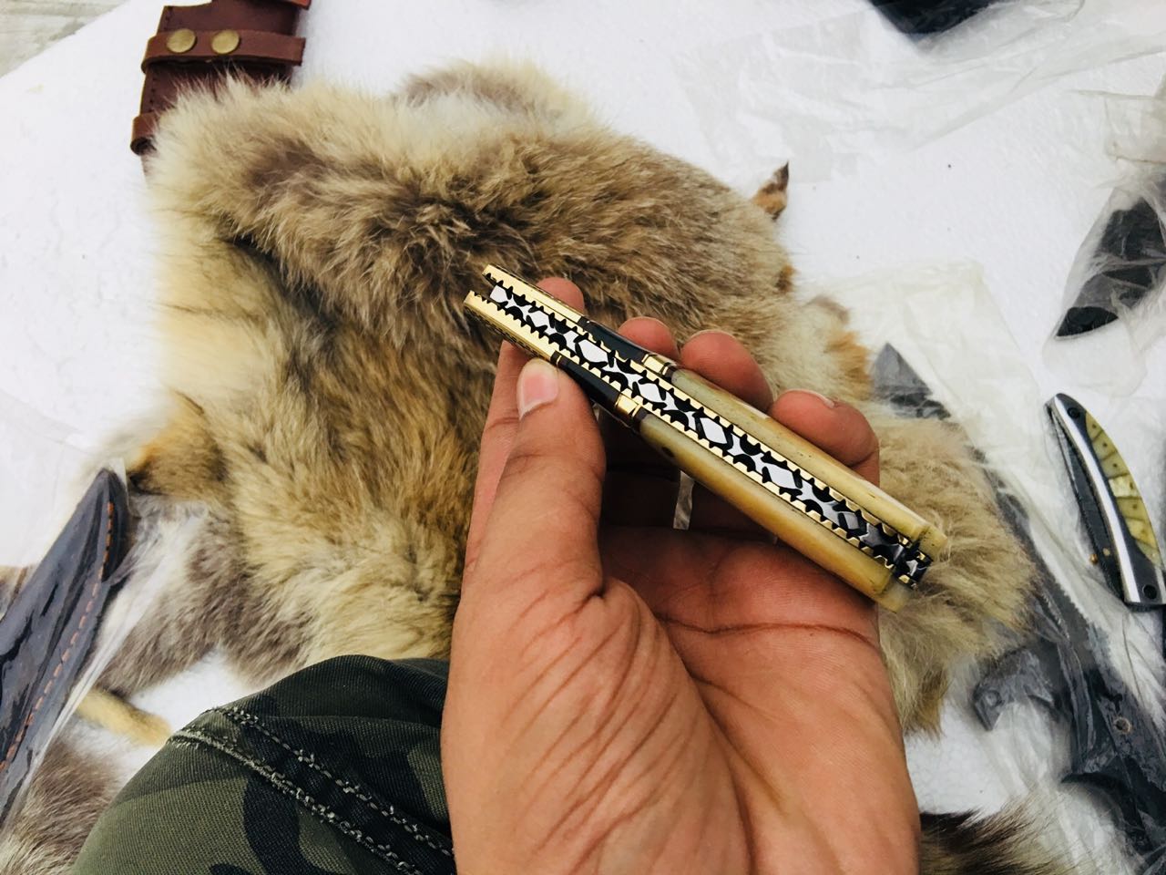 Handle Made Of Bone + Buffalo Horn And Brass Bolster