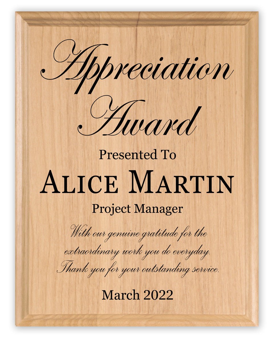 A heartfelt and lasting way to recognize hard work and commitment. Customize your appreciation plaque today.