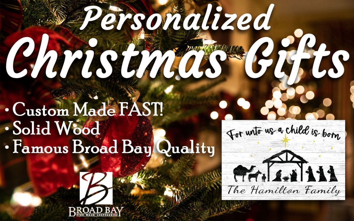 This wonderful wooden farmhouse style Nativity Scene Christmas Sign is personalized with your family name. Make great holiday memories with a new Christmas season tradition of proudly hanging this special custom solid wood Nativity Scene Christmas Sign in your home each holiday season! This vintage, traditional style For Unto Us A Child Is Born Nativity Christmas sign makes a great Christmas gift for your own family or any special Christian family on your holiday gift list. Broad Bay uses only real, solid wood in the creation of our unique personalized Nativity Christmas signs so they can be passed down to future generations.