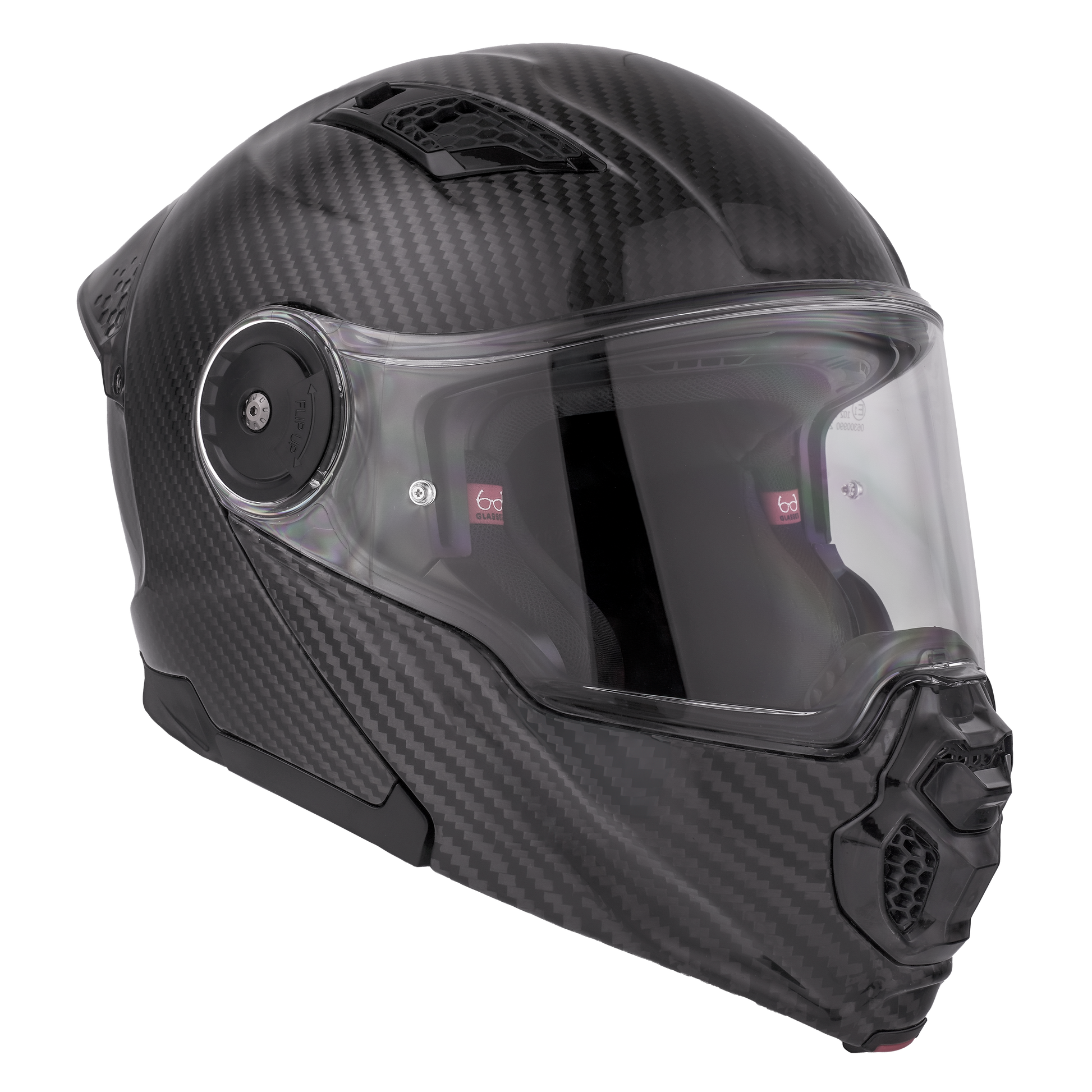 Our D.O.T. And ECE Daytona C6 Pro Modular Helmet, With Inner Anti-Scratch Retractable Smoke Shield, In Carbon Fiber, Meets And Exceeds D.O.T. FMVSS 218 And ECE 22R06 Standards. With 3 Different Shell Sizes (XS-M/L-2XL/3XL-4XL), You're Sure To Get That Proportionate Fit!! Features A Dual Shield System; Outer Anti-Scratch Photochromic Smoke Shield With OptiVision 200 Lens (Anti-Fog) And Inner Anti-Scratch Retractable Smoke Shield. Also Has A Quick Release Lock Retention System; One Finger Release Lever For Easy Detachment, Adjustable Chin And Forehead Ventilation, A Removable Aerodynamic Visor, A Removable, Hand Washable Interior (Moisture Wicking Fabric) And A Full Carbon Fiber Jaw Piece. Bluetooth Compatible. Cloth Draw String Bag Included. Sizes Range From XS-4XL.