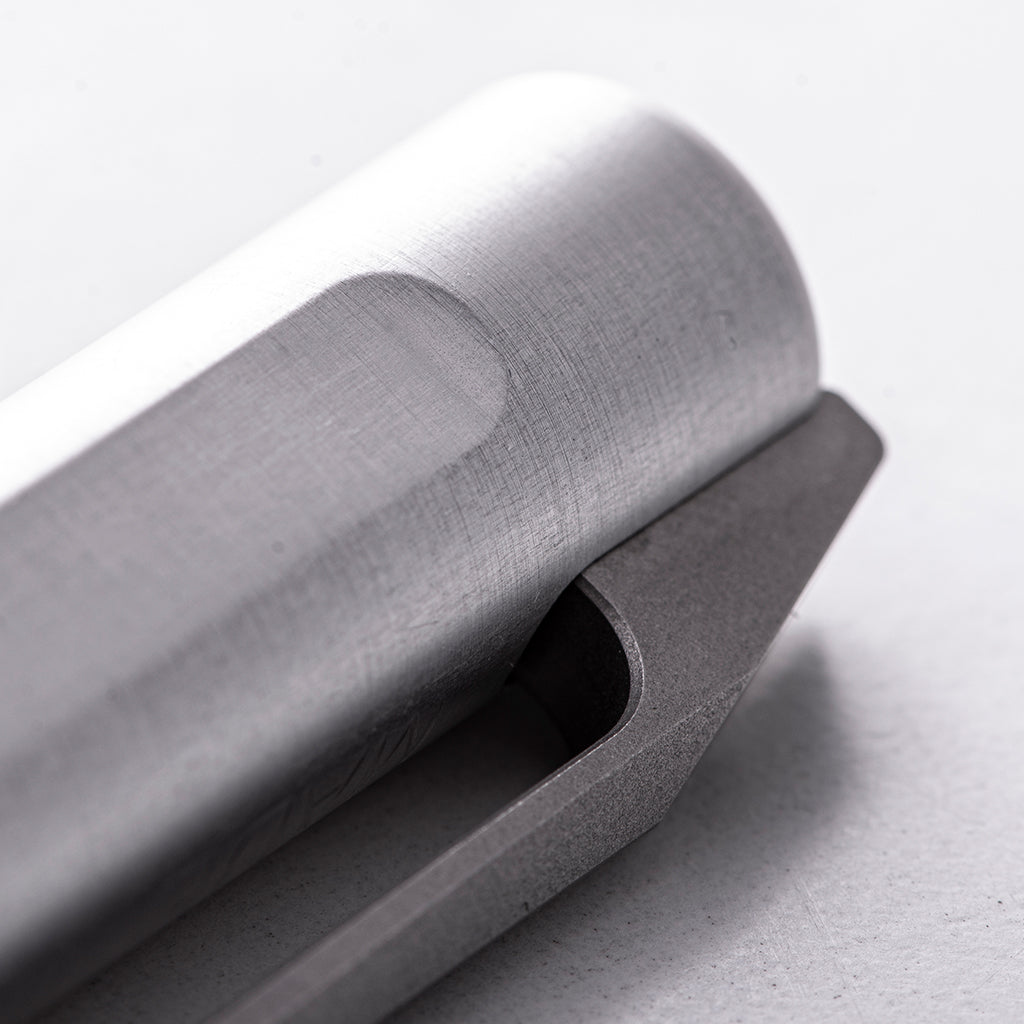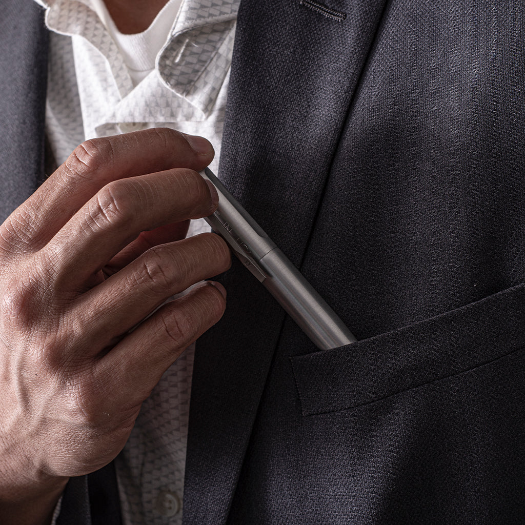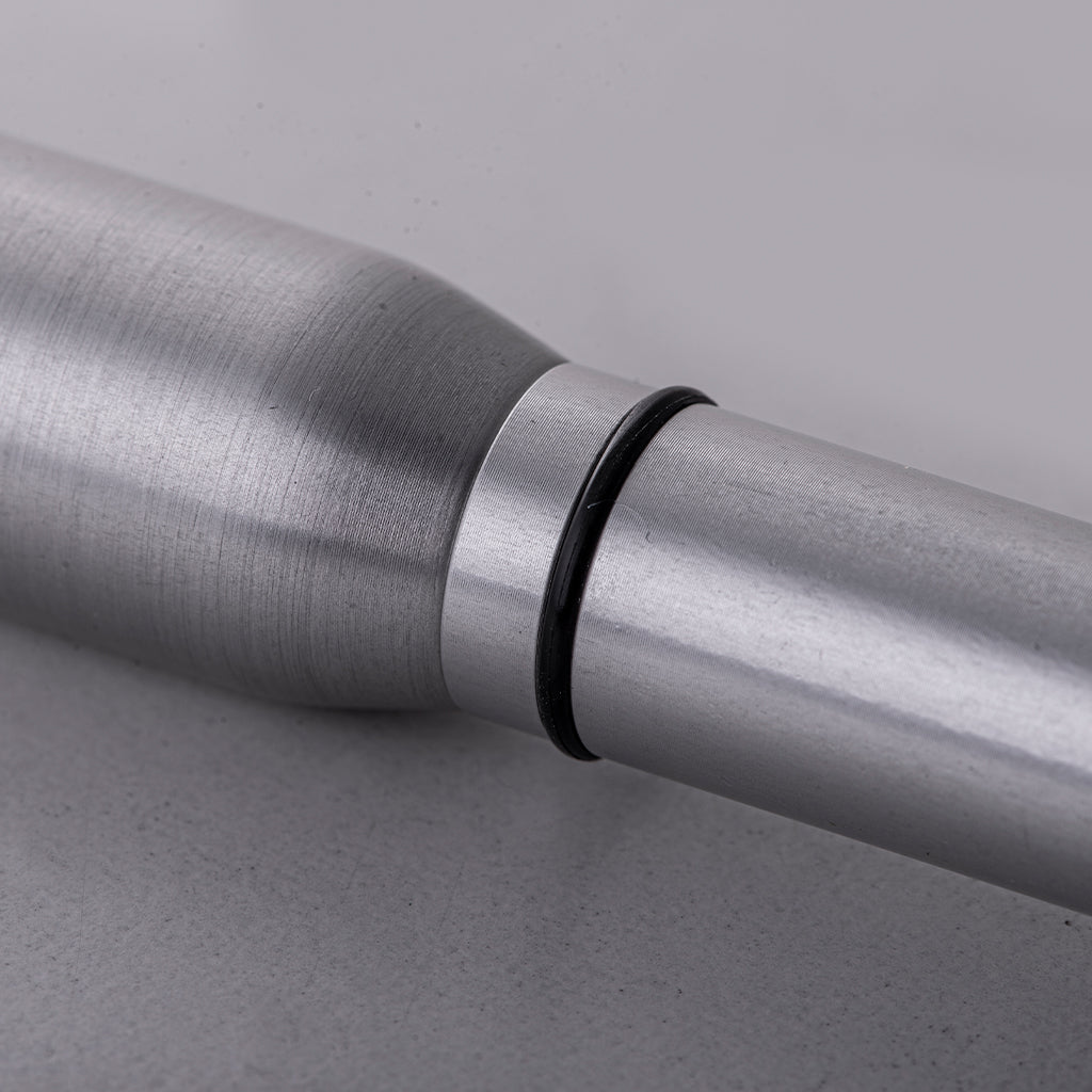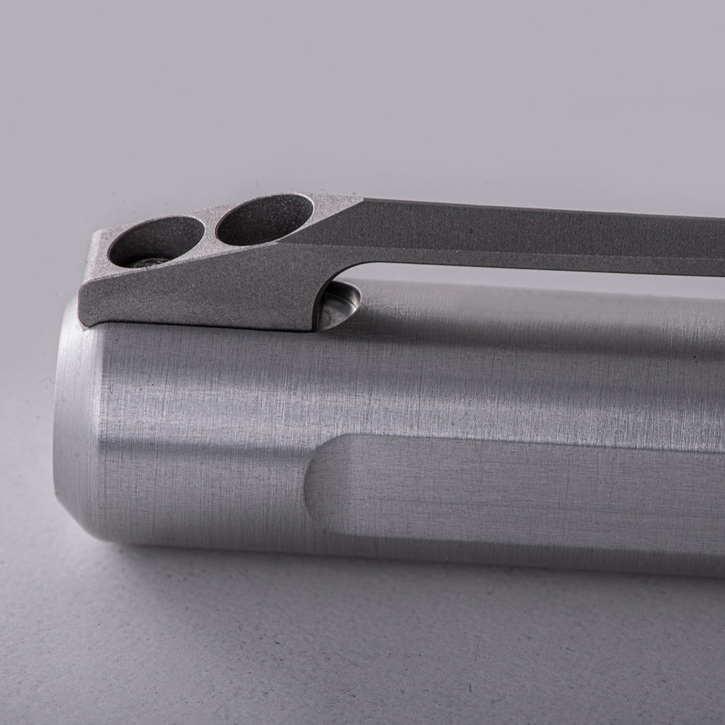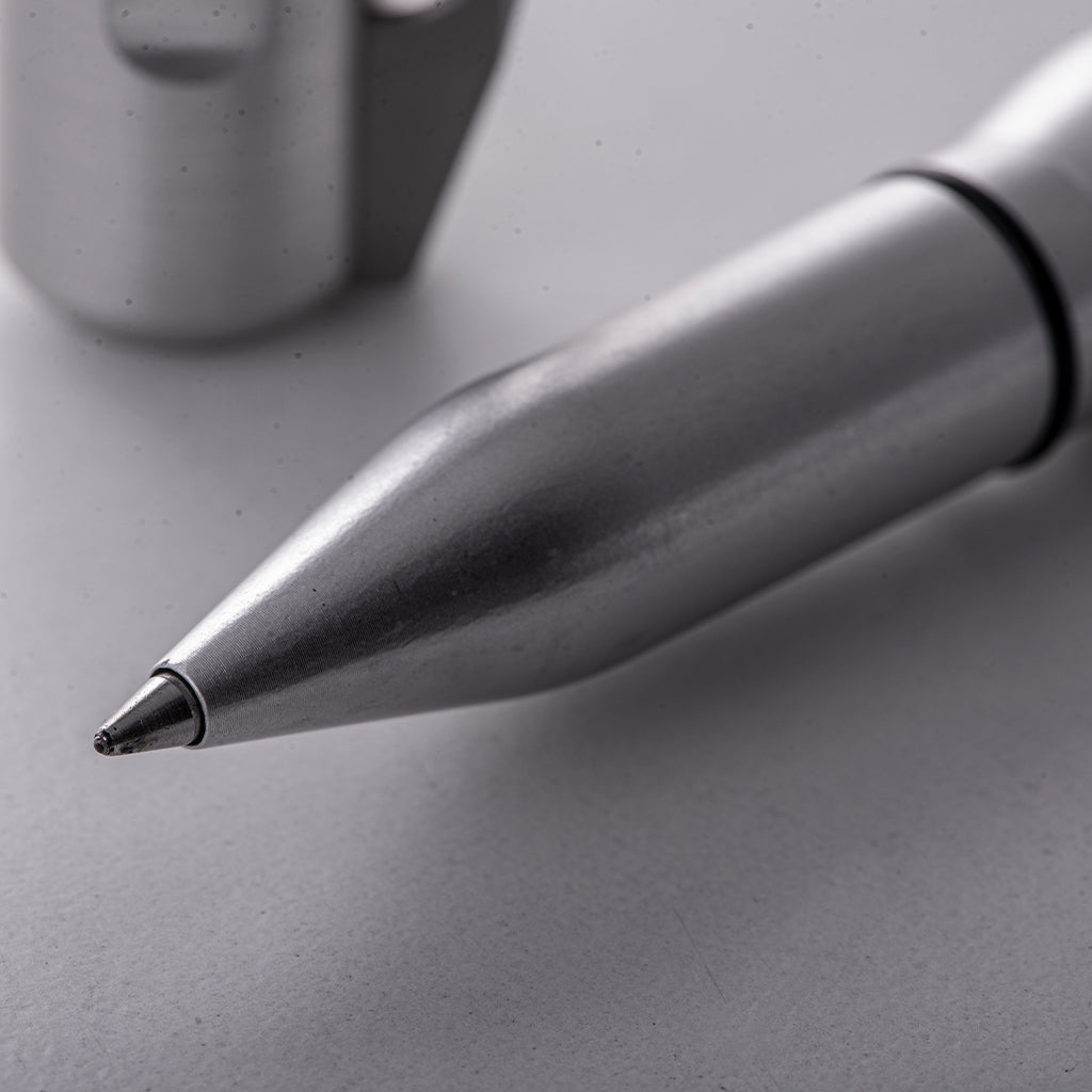 CNC machined out of 6061 aerospace aluminum and anodized in Jet Black or Satin Silver, this pen is equipped with a sleek stainless steel clip and a German Schmidt - safety ceramic roller, non-dry refill (5888 M). As comfortable it is holding the pen, this refill has an equally satisfying ink flow to the paper. The Dango Ace Pen is designed with a friction fit cap with a satisfying suction to seal the pen tip - no need to screw or unscrew. When in need, the cap can even be stored by connecting it on the end of the pen barrel to prevent misplacing the cap. Overall, the Dango Ace Pen flaunts a bold look and feel, and is surely a perfect fit for the person in the Ace's seat.