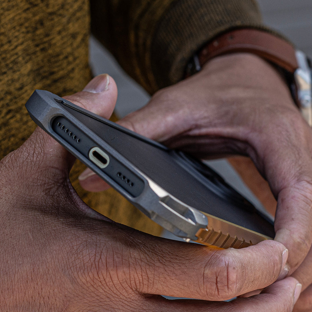 Designed and made in the USA with a balance of strength and agility, the Dango Adapt Case offers rugged protection while being adaptable to any situation. The Adapt Case is a multi-piece design that is composed of 2 main components; an ultra thin MagSafe compatible yet protective interior casing enclosed by a CNC machined rigid outer frame. Dango believes in using the best materials possible based on the application. We selected 6061 aluminum for its lightweight and strong properties with ULTEM™, a heat resistant and rigid resin. Utilizing unique materials, this phone case is sleek and modern in style while having an ideal strength-to-weight ratio.