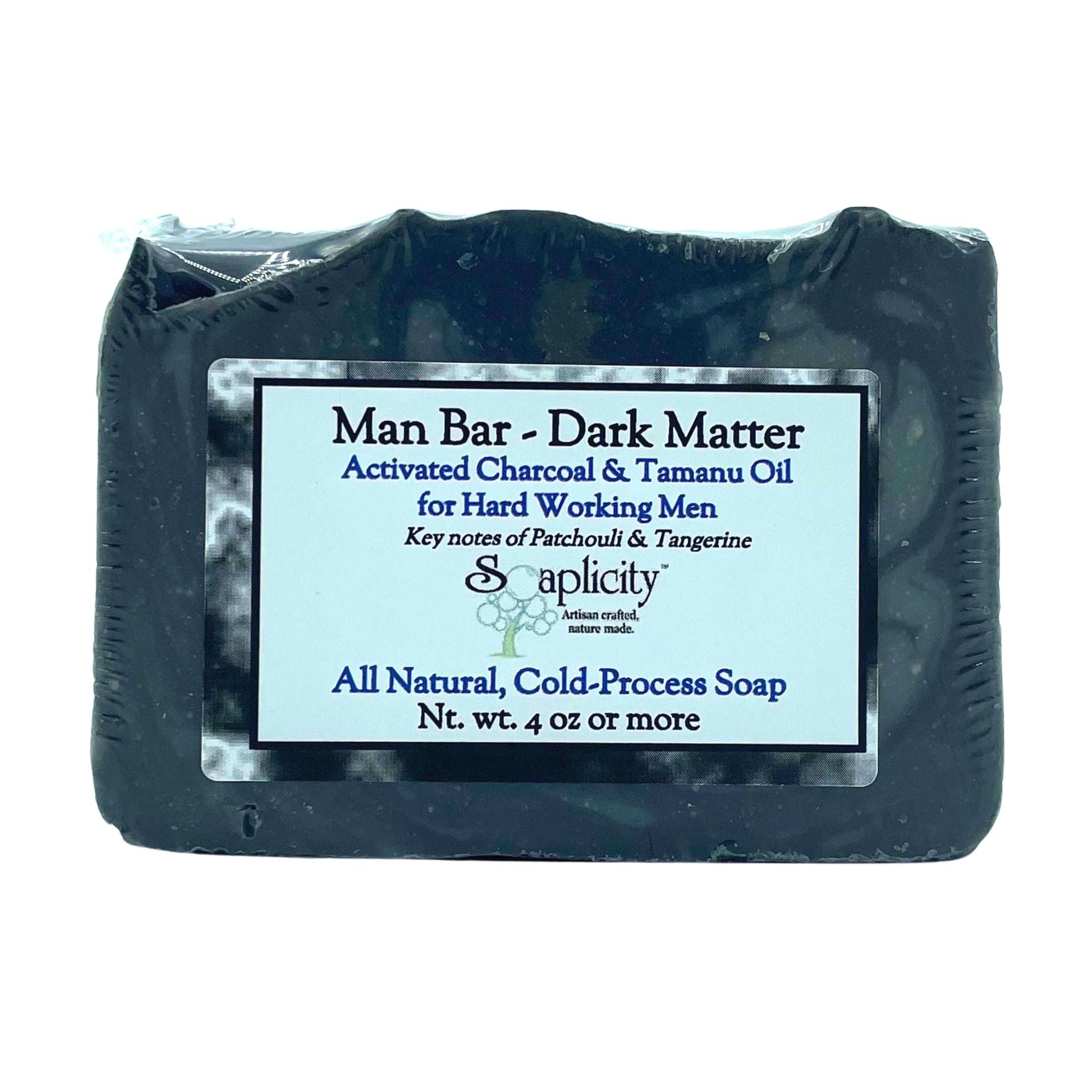 Dark Matter is truly a soap for hard working men. It is a high-cleansing, manly scented bar that is great for hands or body. Activated charcoal cuts the toughest of grease, oil, and grime while offering the deep detoxification. Restorative cocoa butter and restorative hemp oils provide deep down moisture. Bottom line - if the topical benefits of this bar don't make you love this soap then the tantalizing scent provided by 100% pure essential oils of tangerine and patchouli will. Women love it!