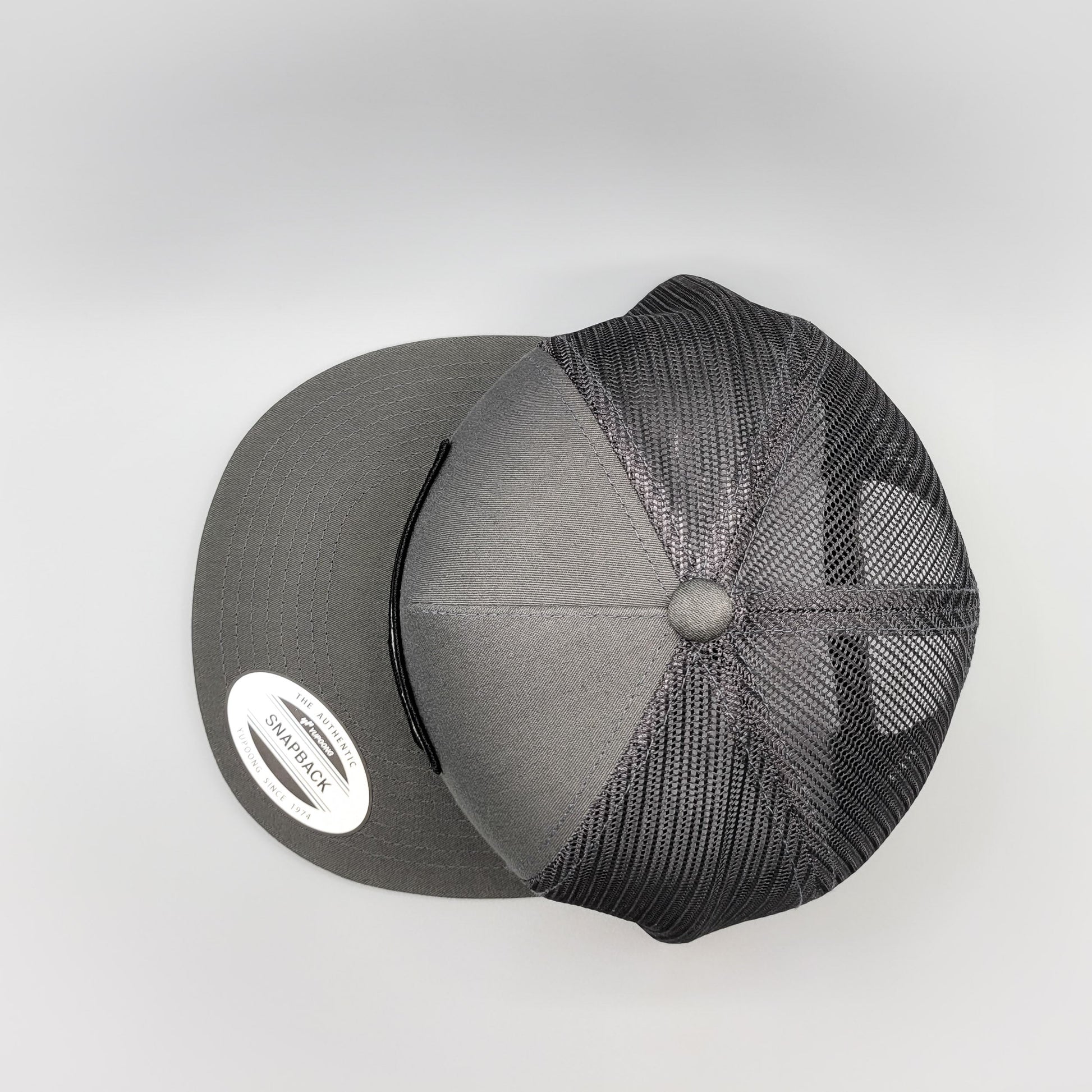 This vintage style, Davey Allison Havoline Racing, Nascar embroidered patch applied to one of our best selling trucker hats -- a Yupoong 6006 Classic Snapback Trucker Hat in charcoal with matching charcoal mesh.