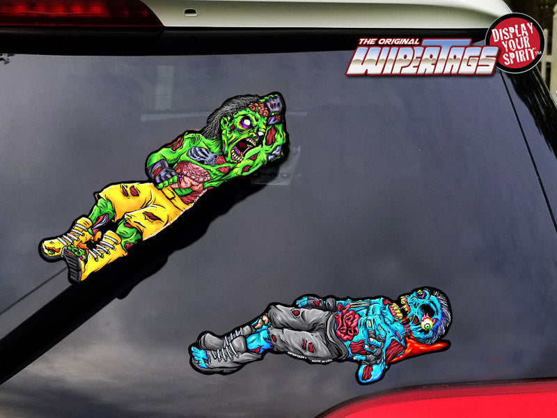 So you love zombies and wrestling? Perfect! This awesome zombies wrestling elbow drop design will satisfy any zombie or wrestling fan, and everyone behind them. Universal size fits most left or right sided wipers. The top zombie wrestler WiperTag is double sided (reversible) for either side.