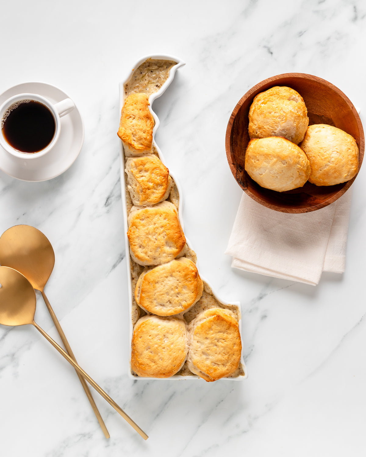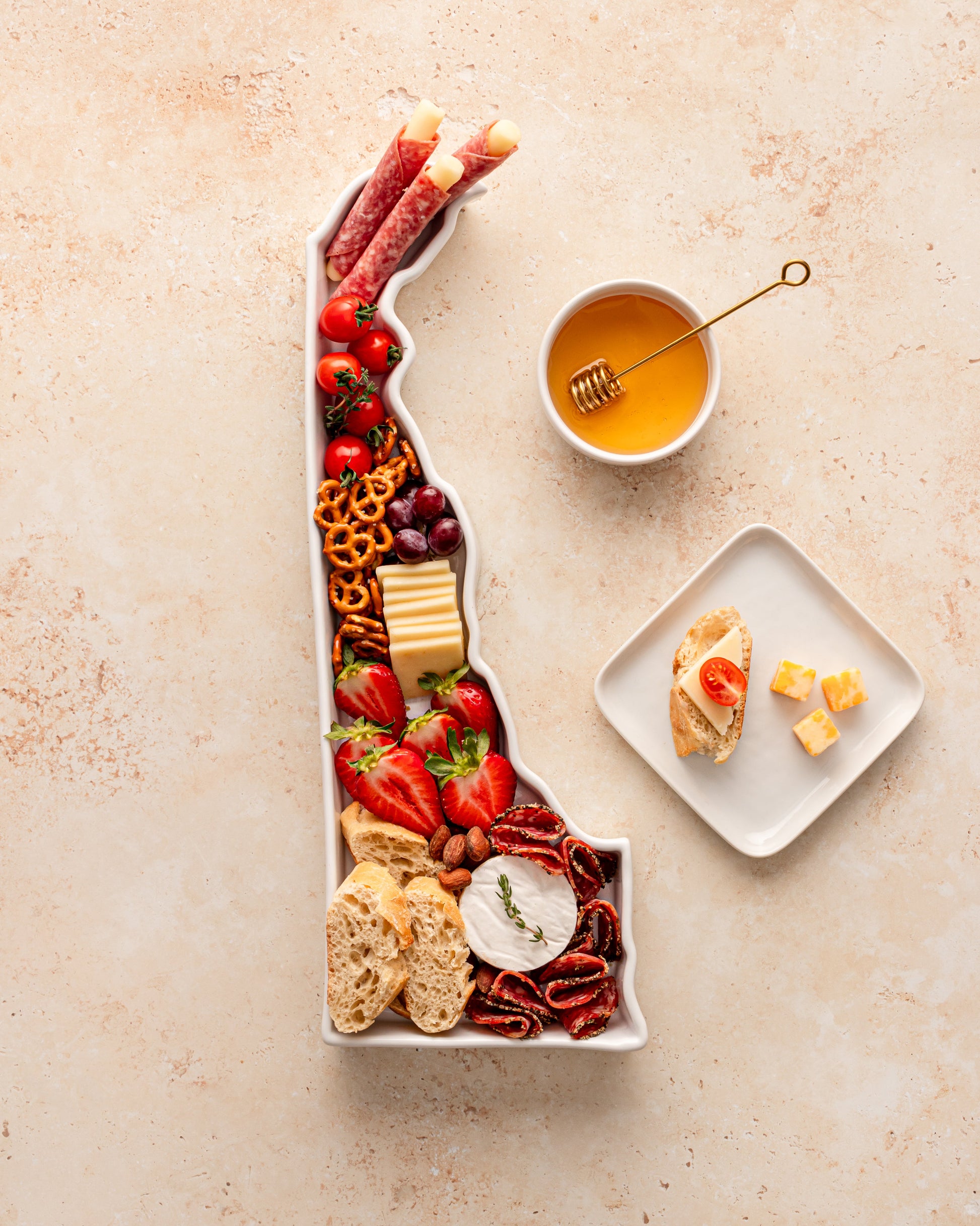 Our Delaware-shaped porcelain plate is made for moments like these. At 15.8" × 5.8" × 1.5", it’s great for a seafood spread, a crusty loaf with butter, or a row of appetizers.