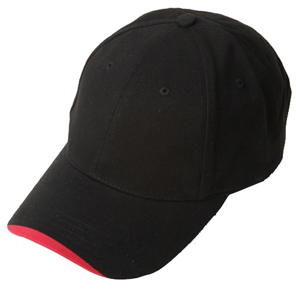 Added Features, Black cap with a 3" preformed bill and a red stripe at the tip