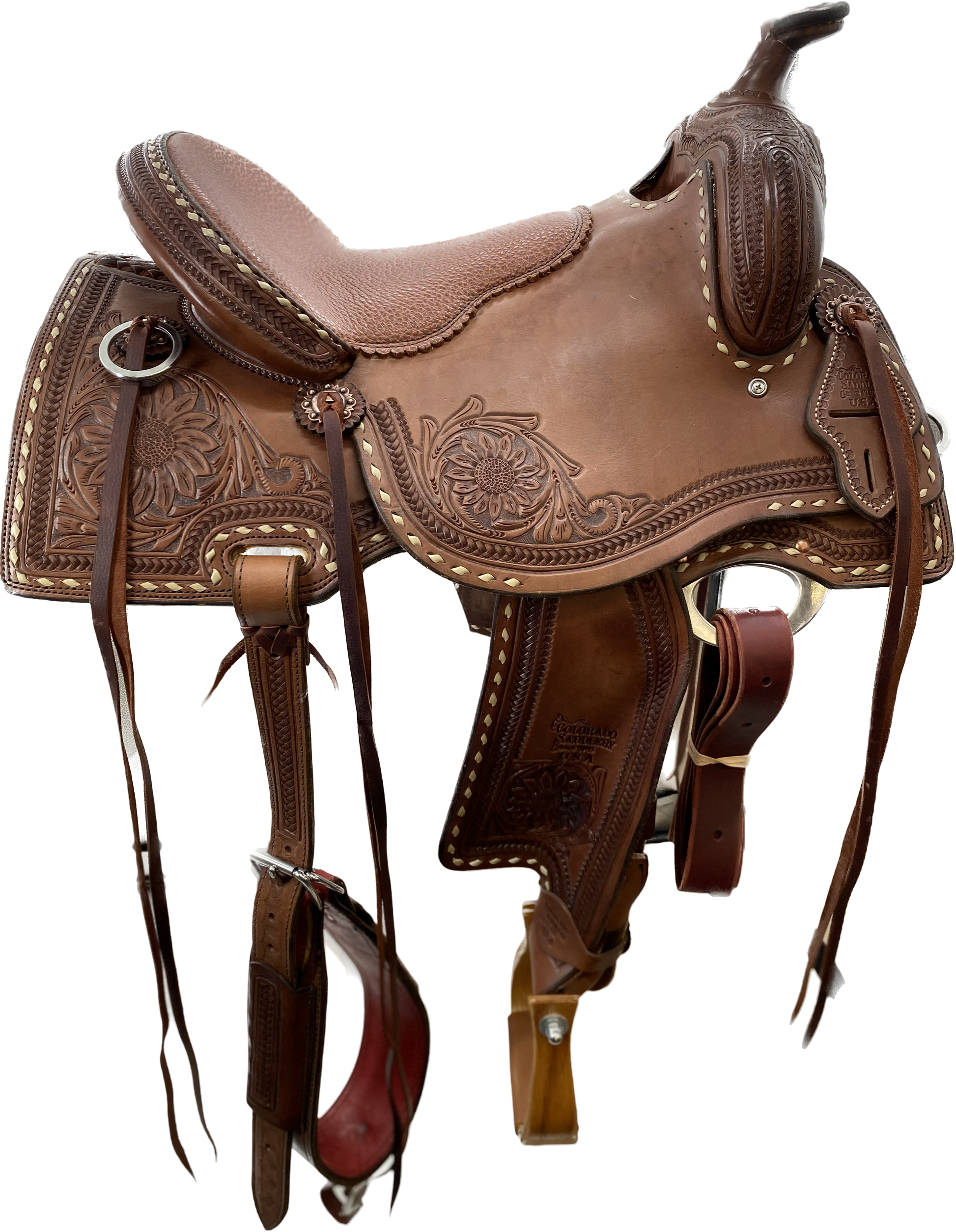 Smooth leather with beautiful floral tooling