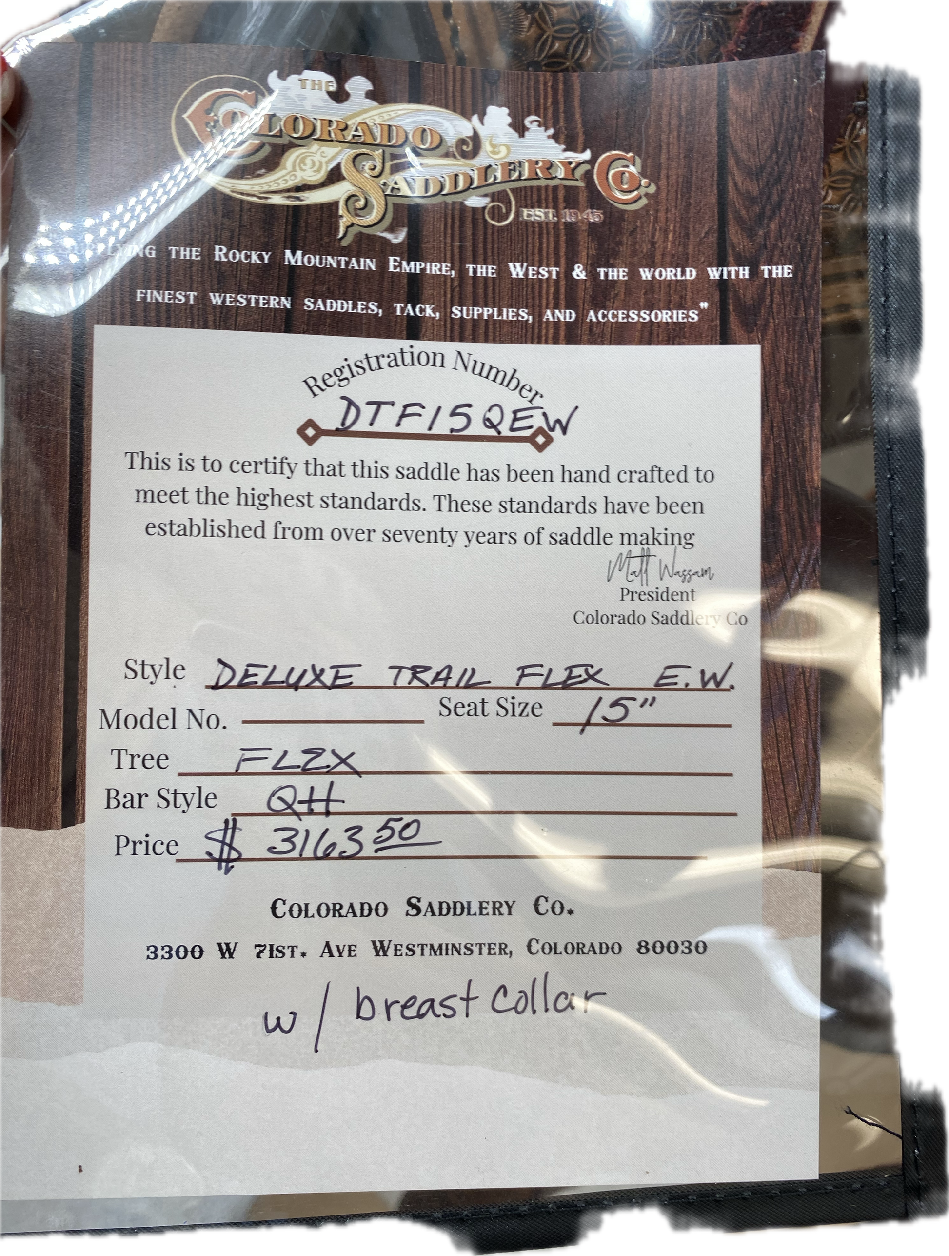 Matching breast collar