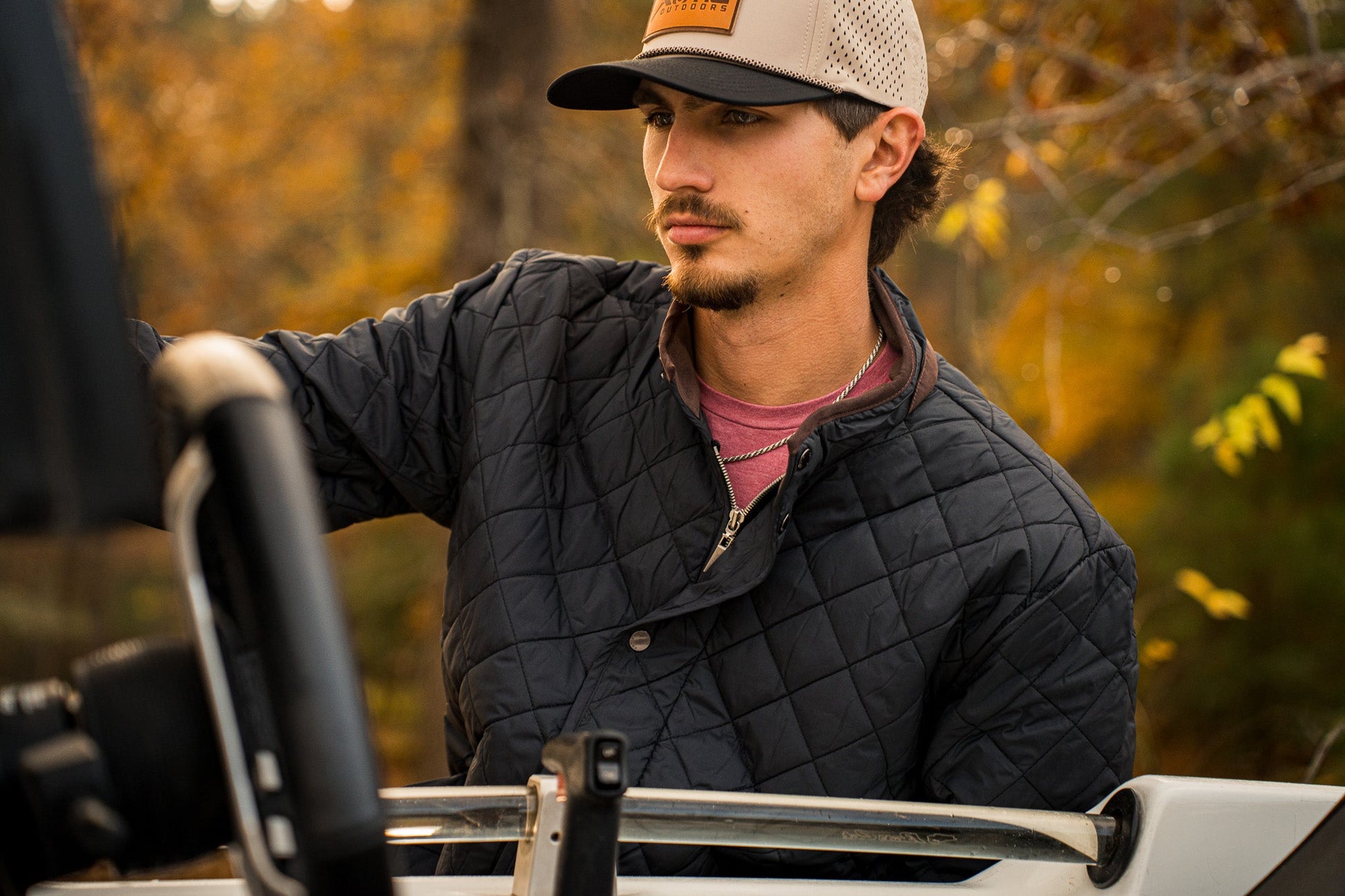 This diamond quilted jacket offers a stylish and functional option for cooler weather. The quilted design provides both warmth and durability, making it a practical choice for any wardrobe. The intricate diamond pattern adds a touch of sophistication, making it a versatile piece for any occasion.