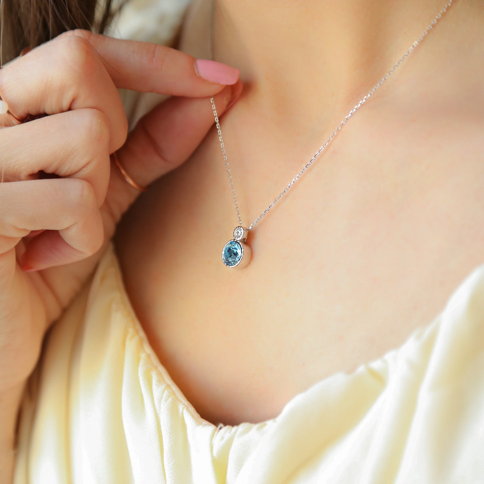 DIANA - Sterilng Silver Necklace with Blue or Pink Zircon
