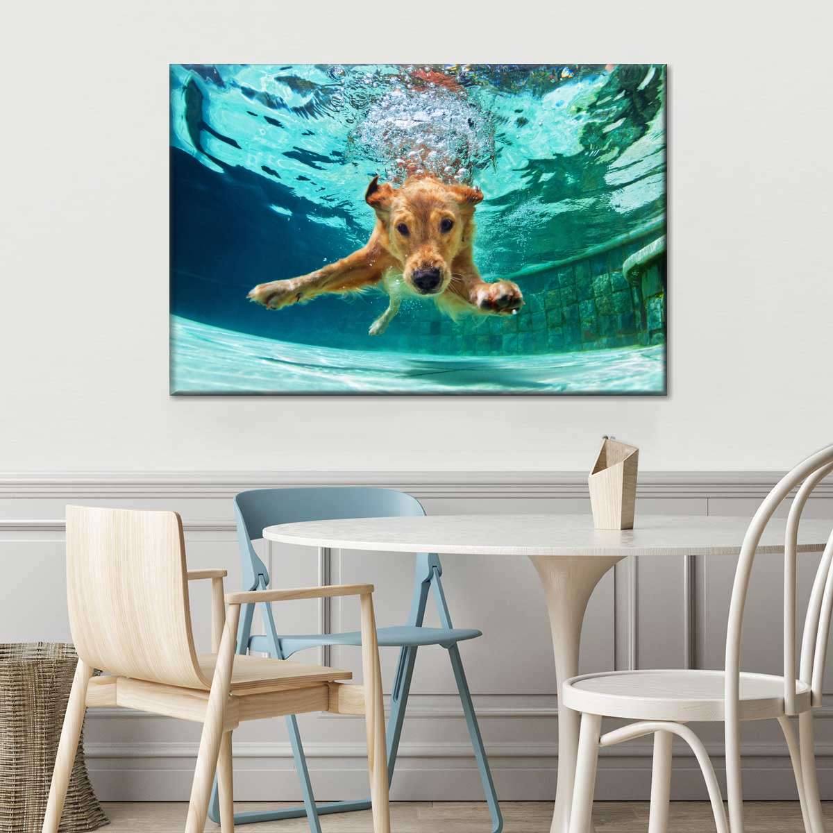 Diving Golden Retriever Wall Art is here to make your home a lot friendlier! Bring the sweetness of your favorite pet and perfect companion into your home and express your love for these lovely creatures. Woof-woof!