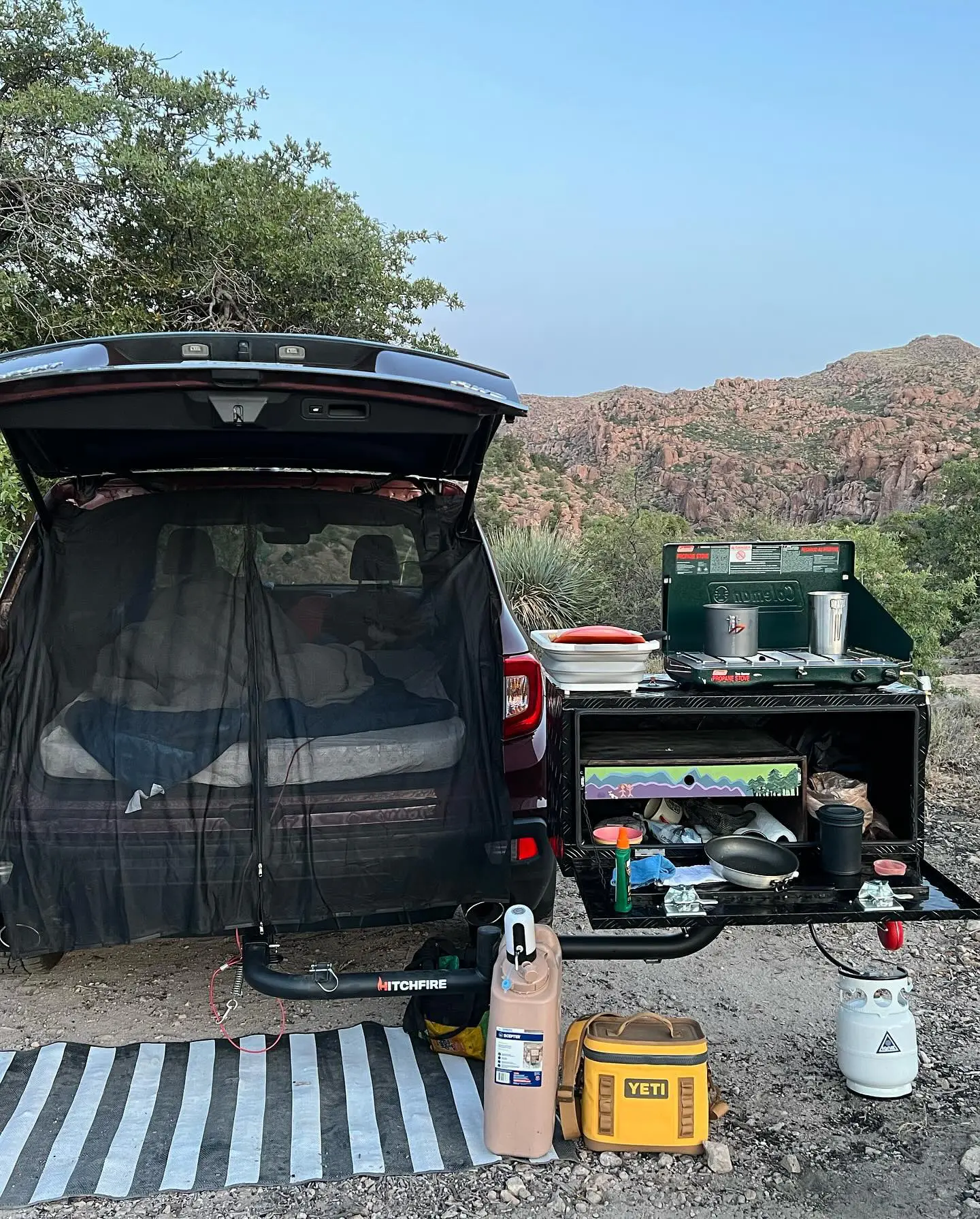 Want to mount something unique to the back of your vehicle? The HitchFire DIY dual swing arm is designed with maximum versatility in mind. The DIY Swing Arm is a heavy duty swing away arm with a collar that allows you to mount whatever you like to it. Made with heavy duty powder coated steel, it was specifically designed for the outdoors. Designed to maximize your possibilities, the DIY Swing Arm has a weight limit of 125 pounds. The swing away feature allows for the mounted item to be swing away from the vehicle for those wanting more clearance for your vehicle.