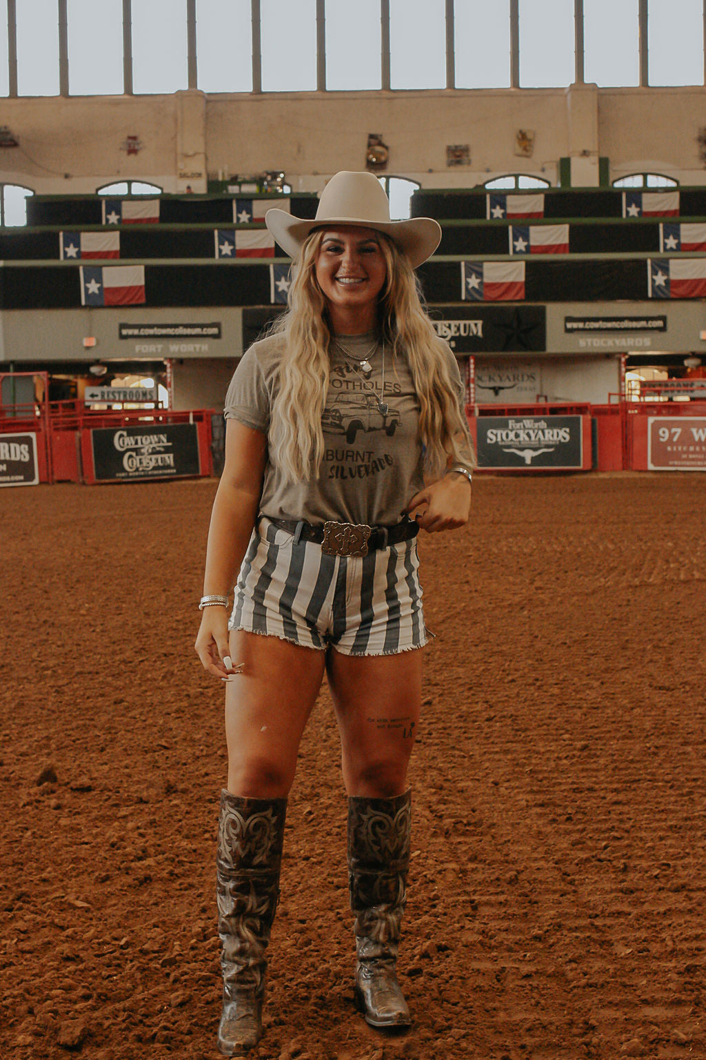 If you love country music then our Dodging Potholes Graphic Tee was made just for you! You’ll have all the boys acting like a heartbroke desperado in this fun graphic tee. Pair with your favorite denim shorts and jewelry for a hot summer look!
