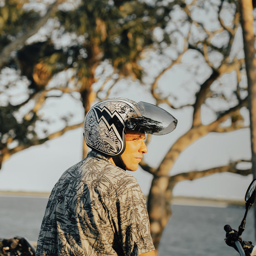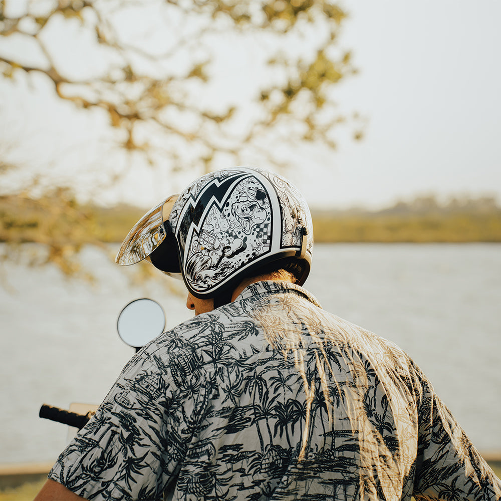 DOT Approved Daytona Cruiser Open Face Motorcycle Helmet - Men, Women & Youth - With Visor & Graphics - W/ Graffiti