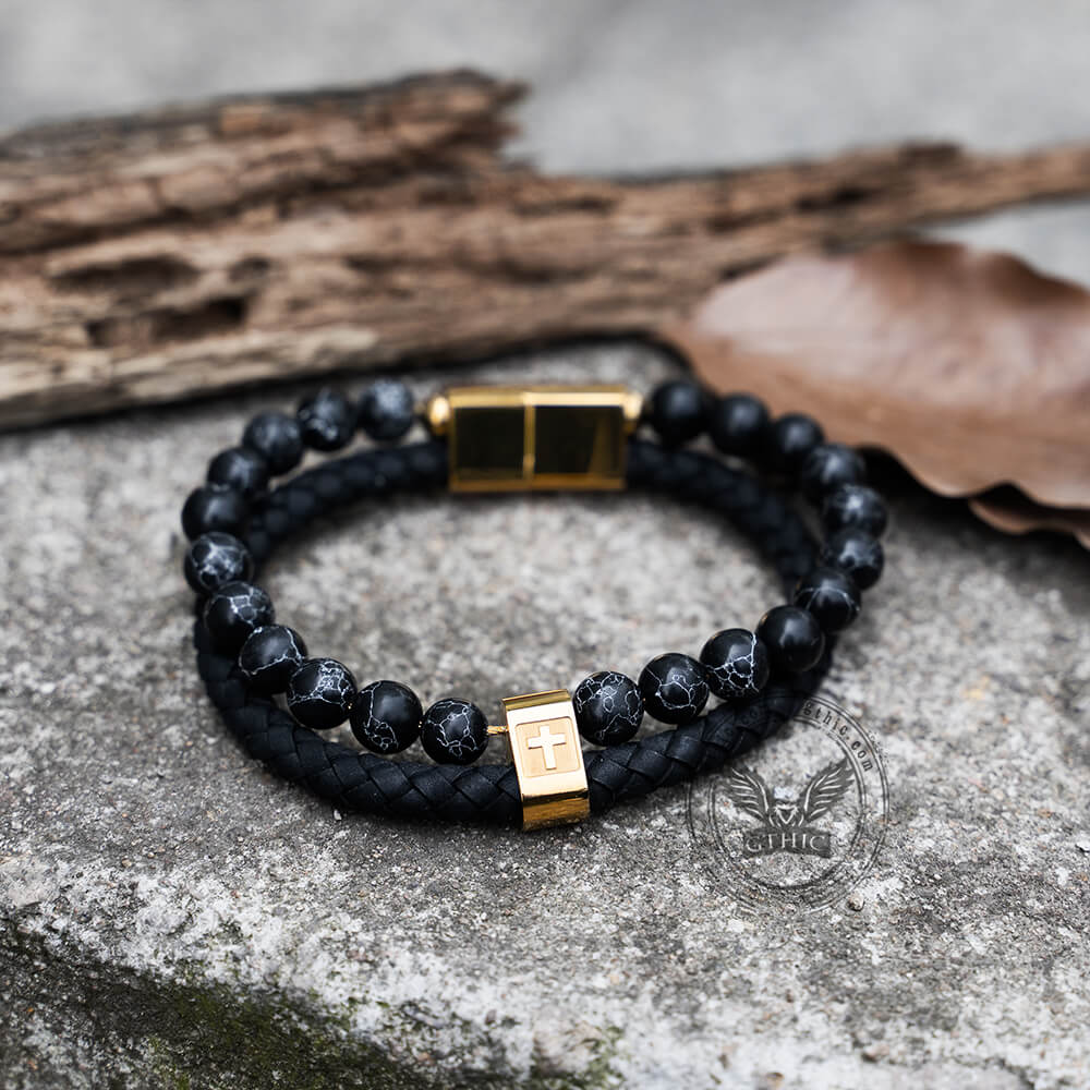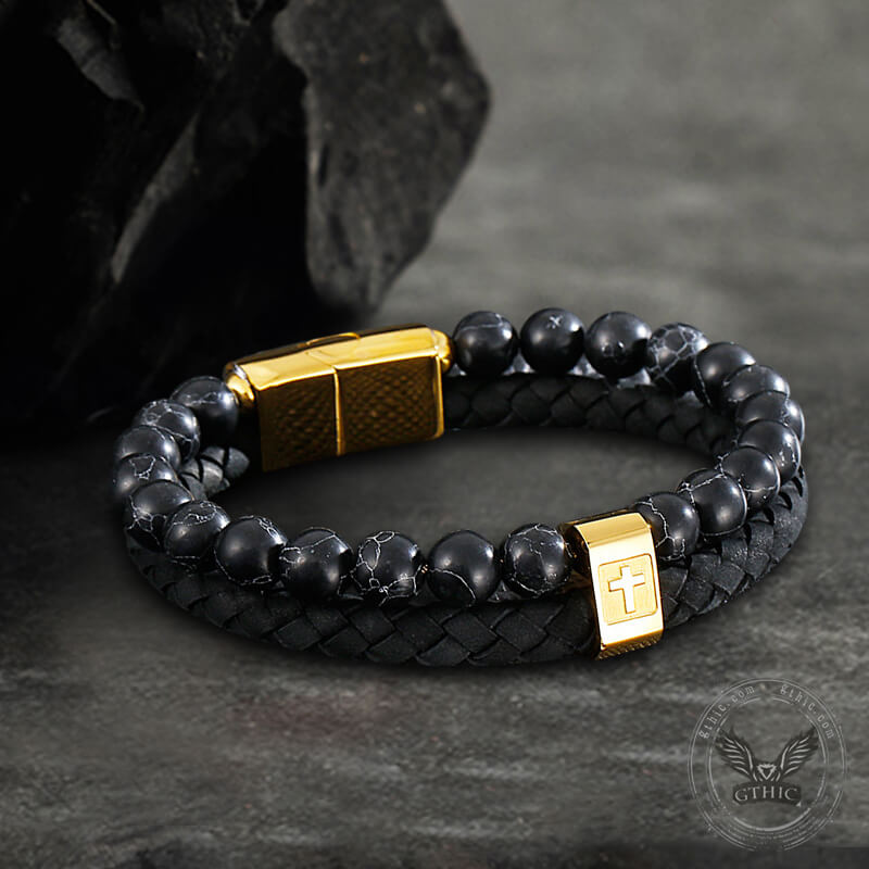 Double Layer Cross Turquoise Stainless Steel Bracelet