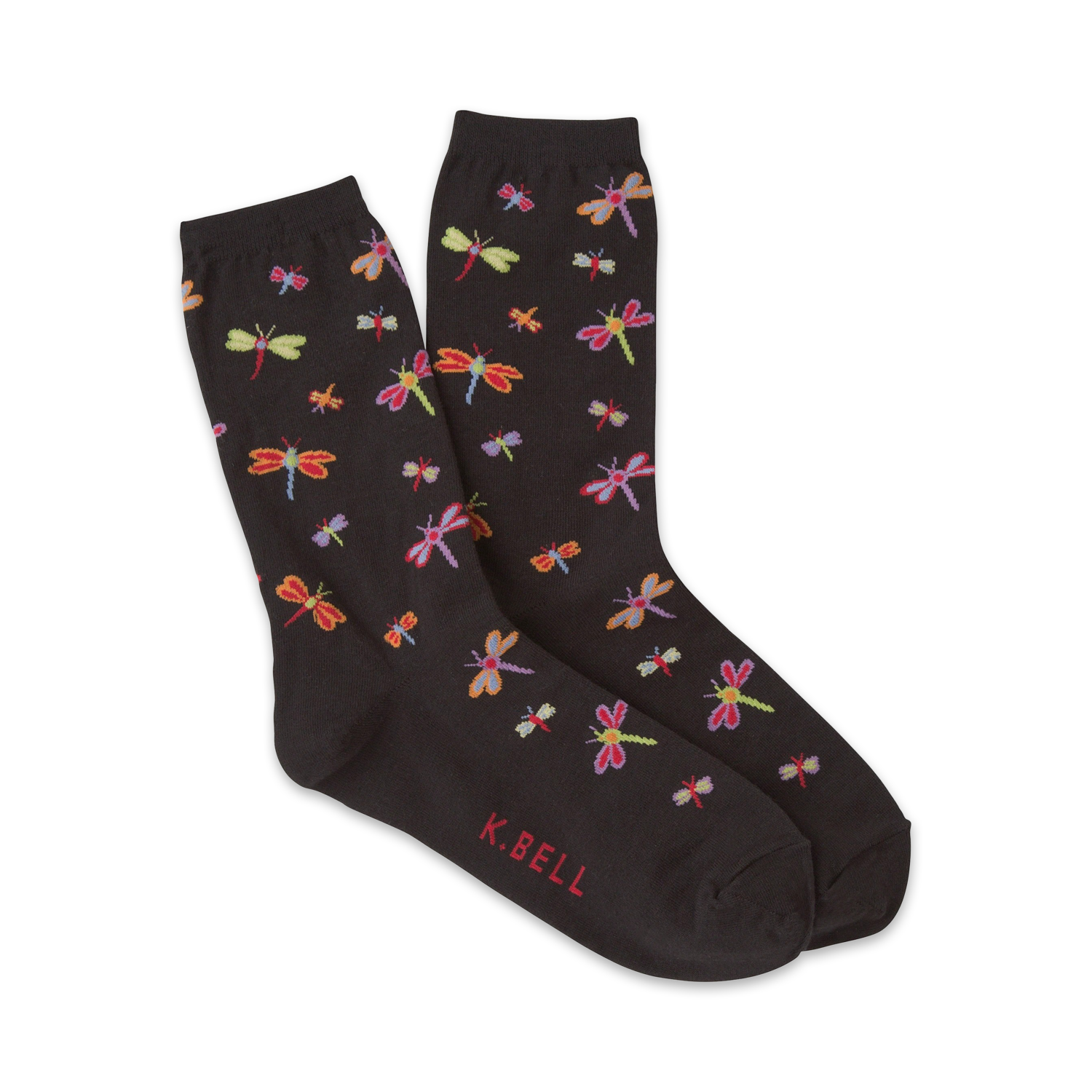 Show off your love for bright pops of vivid color and amazing dragonflies! This cool pair of all black crew socks features brightly colored dragonflies in different shade combinations and sizes printed all over. If you're looking to add a splash of color to your ensemble, pair these fun socks with any outfit!