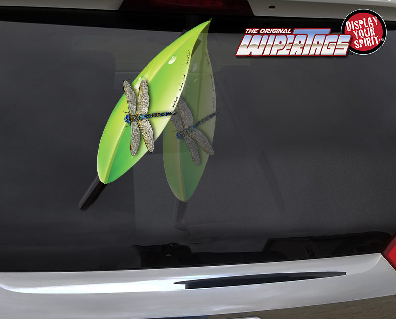 Beautifully detailed dragonfly resting on a leaf. Universal size fits most rear wipers.