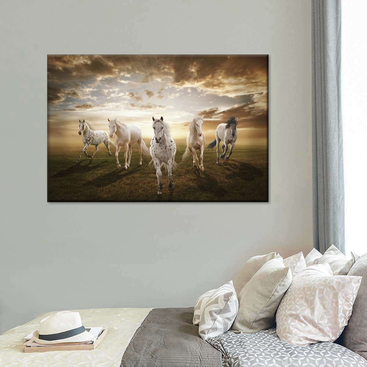 Dramatic White Horses Wall Art is sure to add beauty and versatility to any room in your home. Show your love for this noble and friendly animal by placing this stunning art print on your walls.