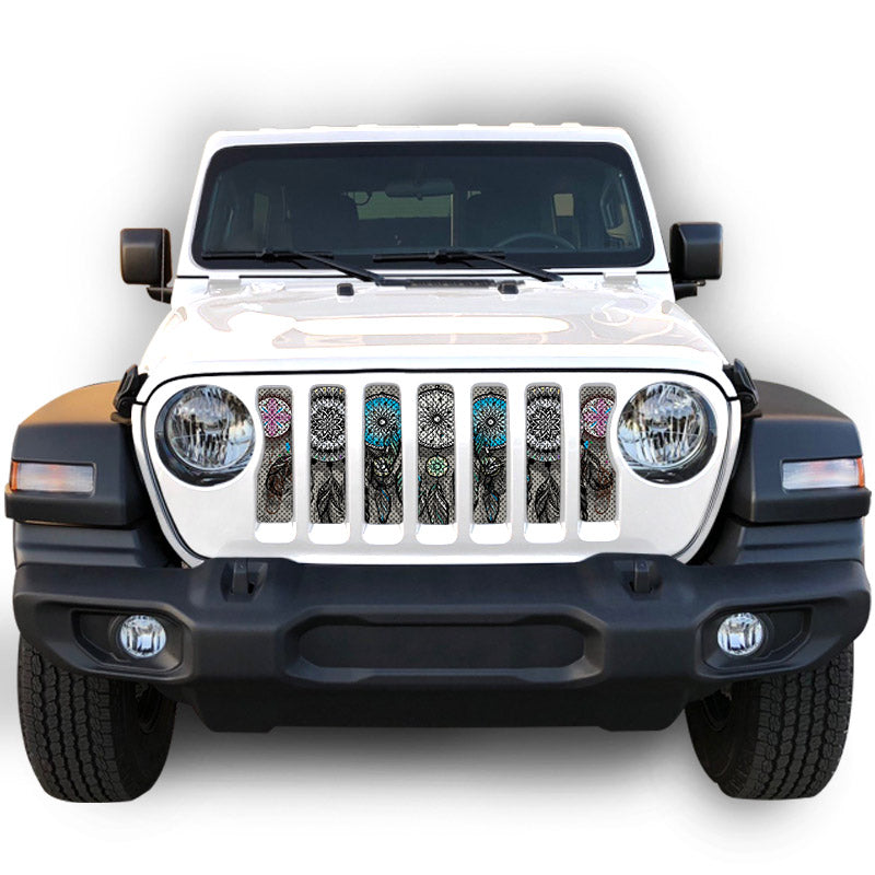 American made Jeep Grille Inserts. 15 minute install for quick and easy Jeep personalization. Rust proof, perforated aluminum inserts with a lifetime warranty. Fits JK/JKU: 2007-2018, JL/JLU 2018- Current, and JT/Gladiator: 2019-Current. Hundreds of designs available or customize your own