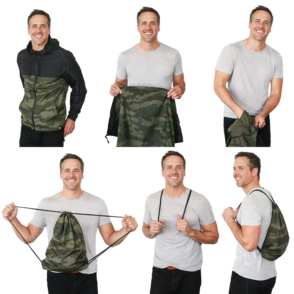 Please Note: All Dryflip Windbreakers are equipped with standard non-adjustable double-drawcord backpack straps, that are perfect for everyday use, but do not feature the Slide&Bite adjustable cord locks. If you're looking for optimal adjustability in an all-weather jacket, check out the Dryflip Rain Jacket.