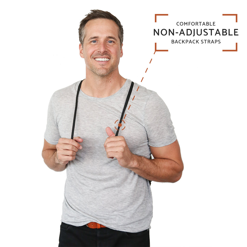 - Lightweight breathable backpack lining makes straps undetectable in hoodie form