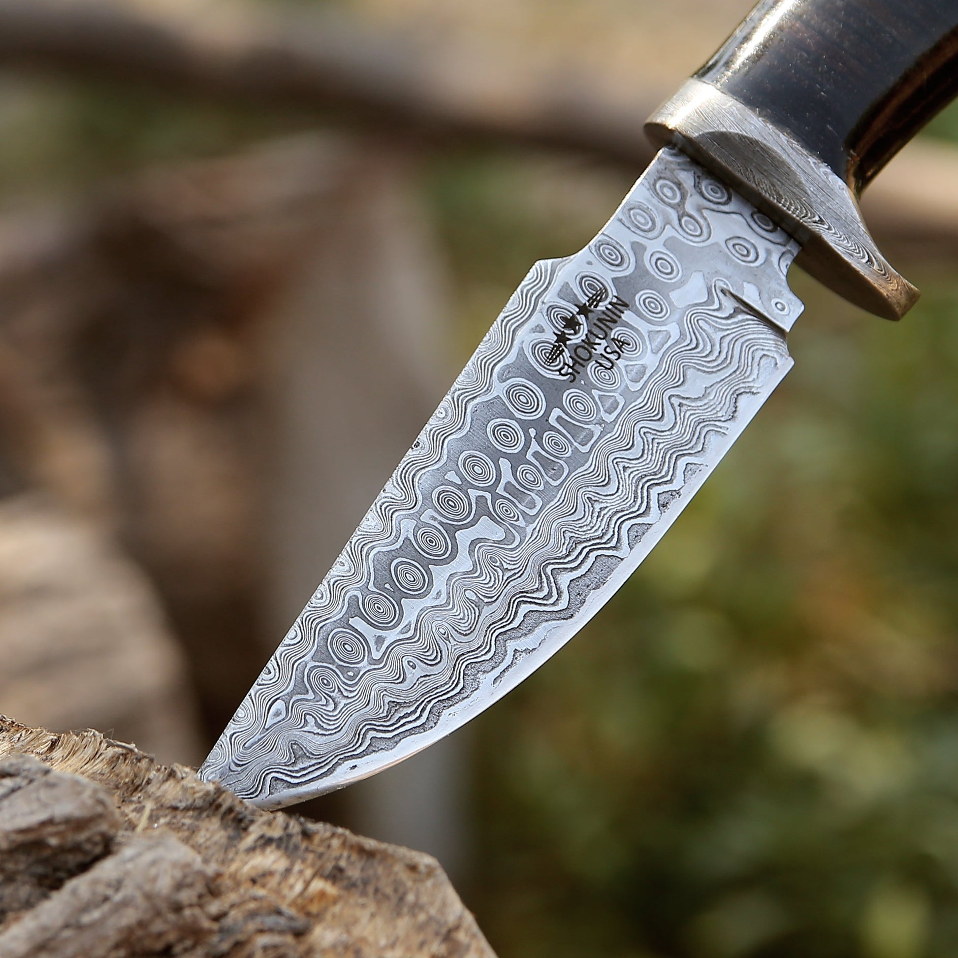 This exquisite hunting knife is not only visually striking but also highly practical. It looks impressive in the sheath or on your belt, ensuring easy access when needed. The blade's exceptional sharpness makes every task, from field dressing to campsite chores, a breeze.