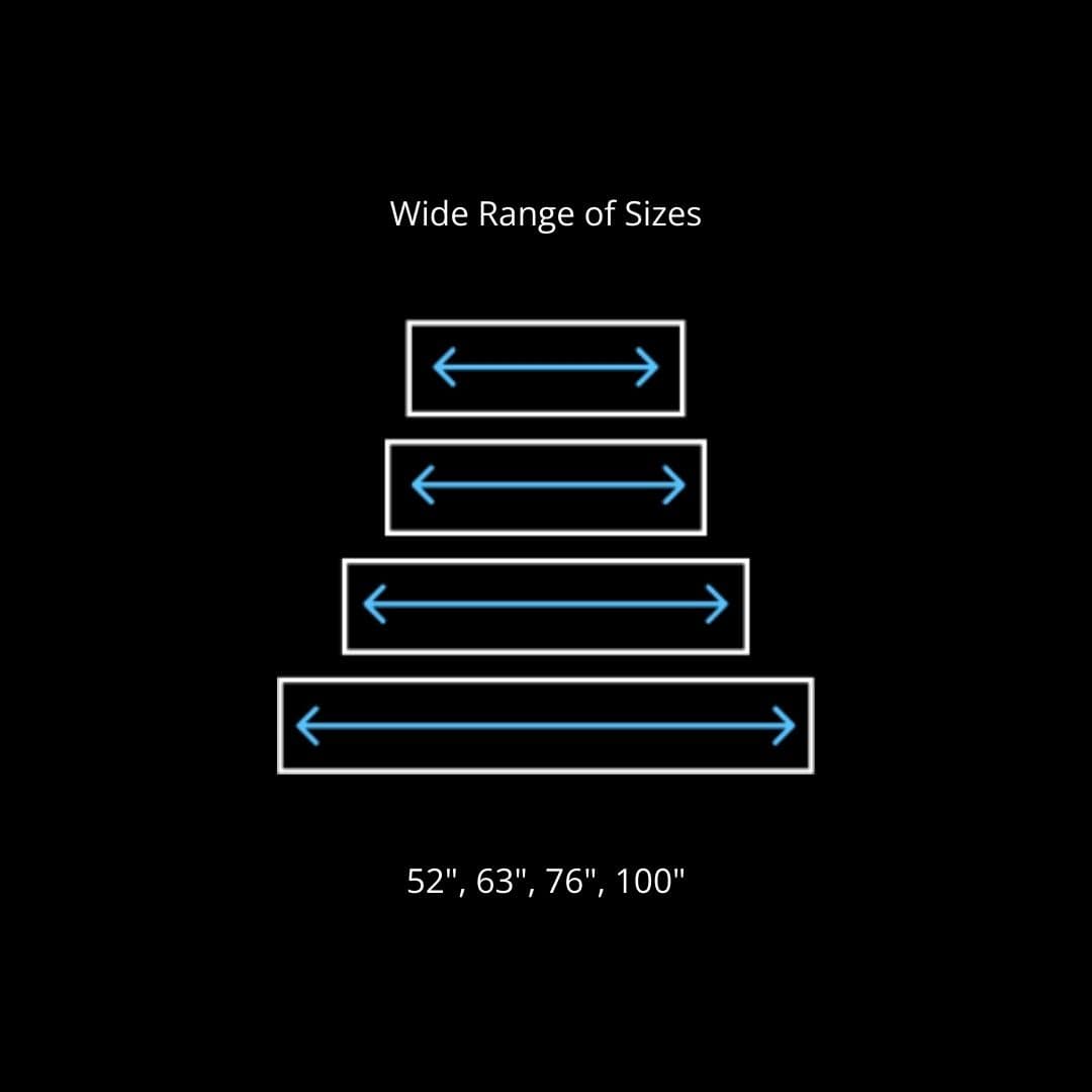 - 100" Model: 19 1/4" H x 97 3/8" W x 6" D