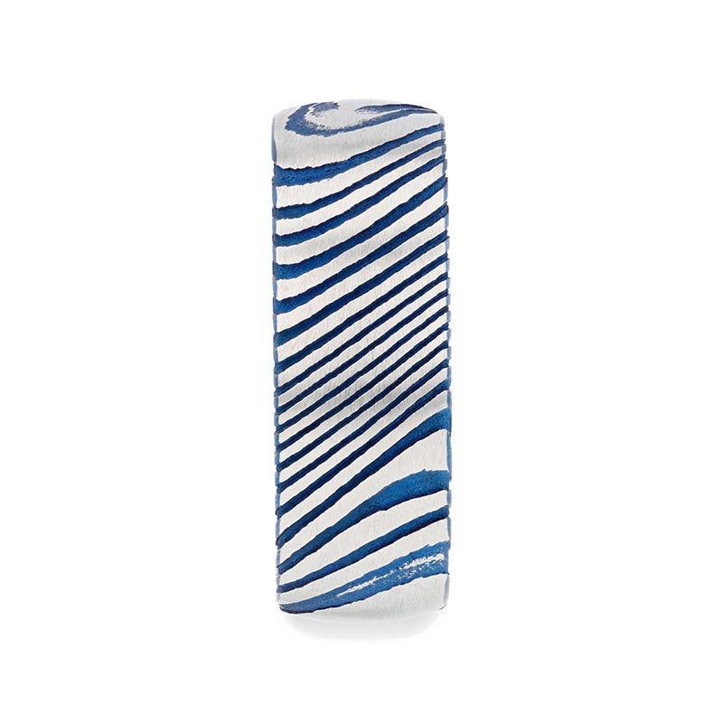 This eye-catching domed-profiled ring by Thorsten made of incredibly strong Damascus Steel features a brushed finish and distinctive blue banding patterns, the result of welding different types of steel and iron layers together intensifying its value and symbolizing the strong bond of your commitment and love.