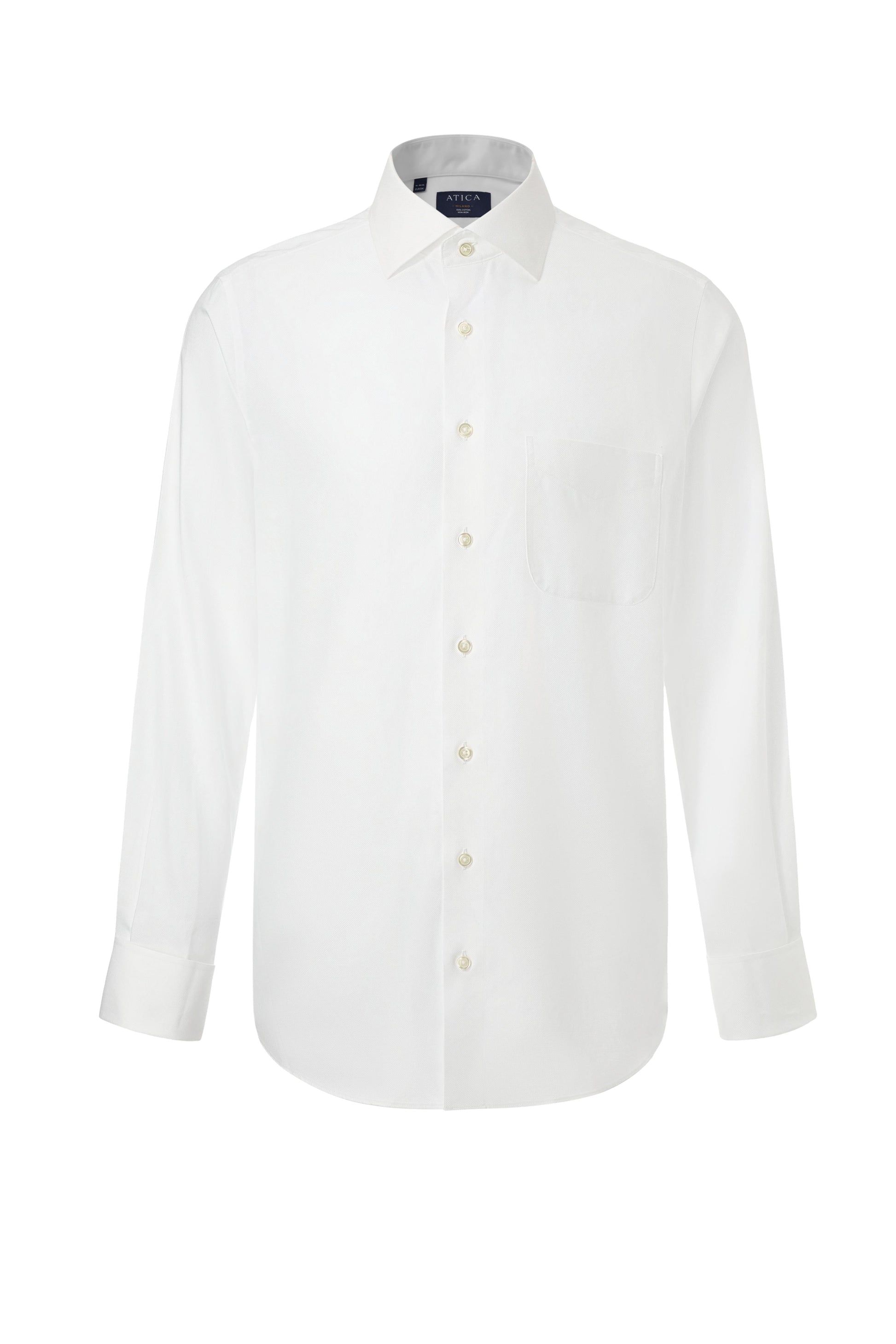 Show off your amazing figure and impeccable sense of style with our Edinburgh Cufflink White Shirt. Made with 100% Premium American Cotton and featuring a re-defined Presidential Spread Collar, this shirt exudes elegance and sophistication. The Royal Oxford Weave and French Plaquette add a touch of luxury, while the non-iron, wrinkle resistant fabric ensures you always look polished with minimal effort. Keep it looking fresh with a simple three-step care process.