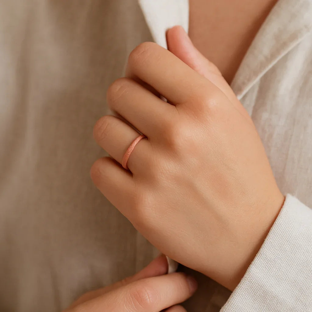 EMBER Domed Women's Rose Gold Plated Tungsten Carbide Ring with Sandblasted Crystalline Finish - 2mm