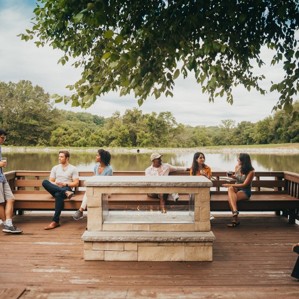 A 2-Sided Outdoor Gas Fireplace That Doesn't Skimp on Luxe or Comfort