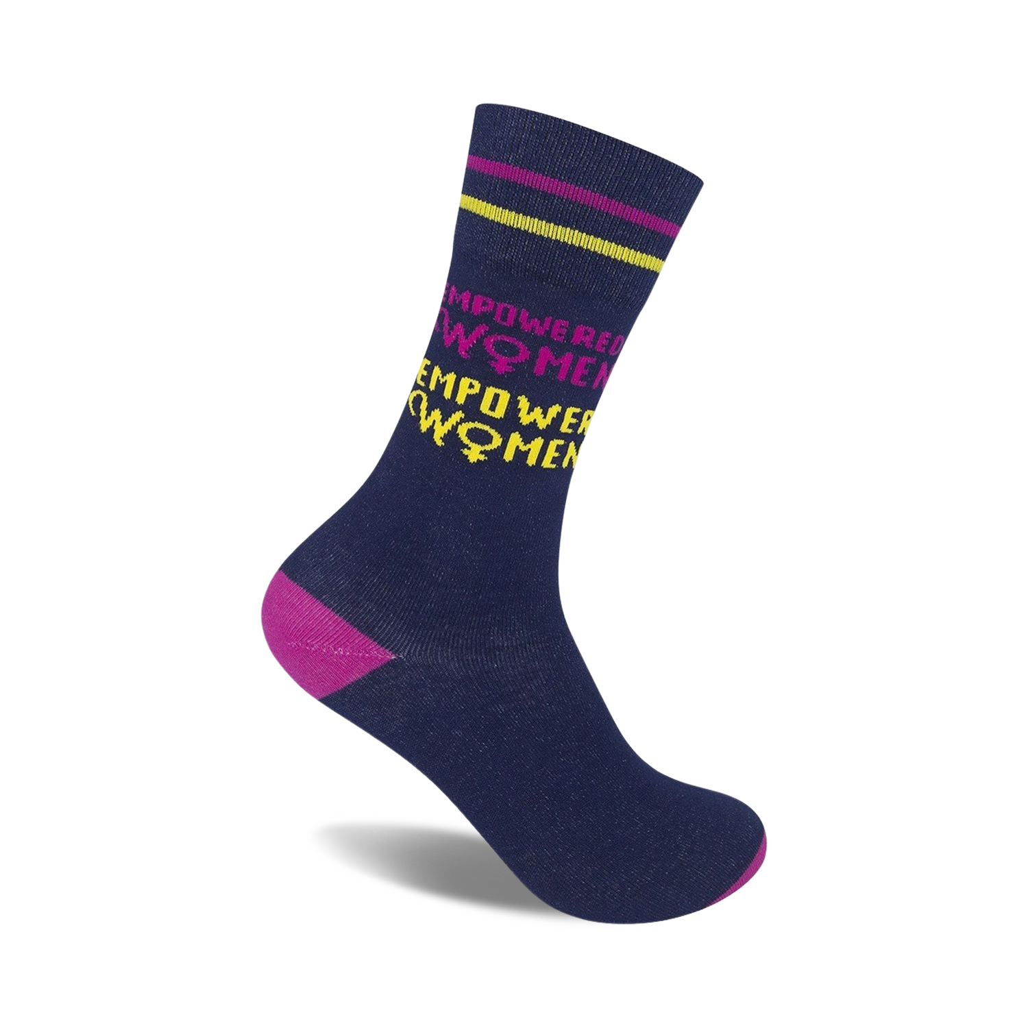 With these Empowered Women socks on your feet, you'll be walking tall and proud! These dark blue socks with pink and yellow stripes around the cuff will add a splash of color to your step. Wear them with flats, boots, or sneakers, and let the world know that you're a force to be reckoned with!