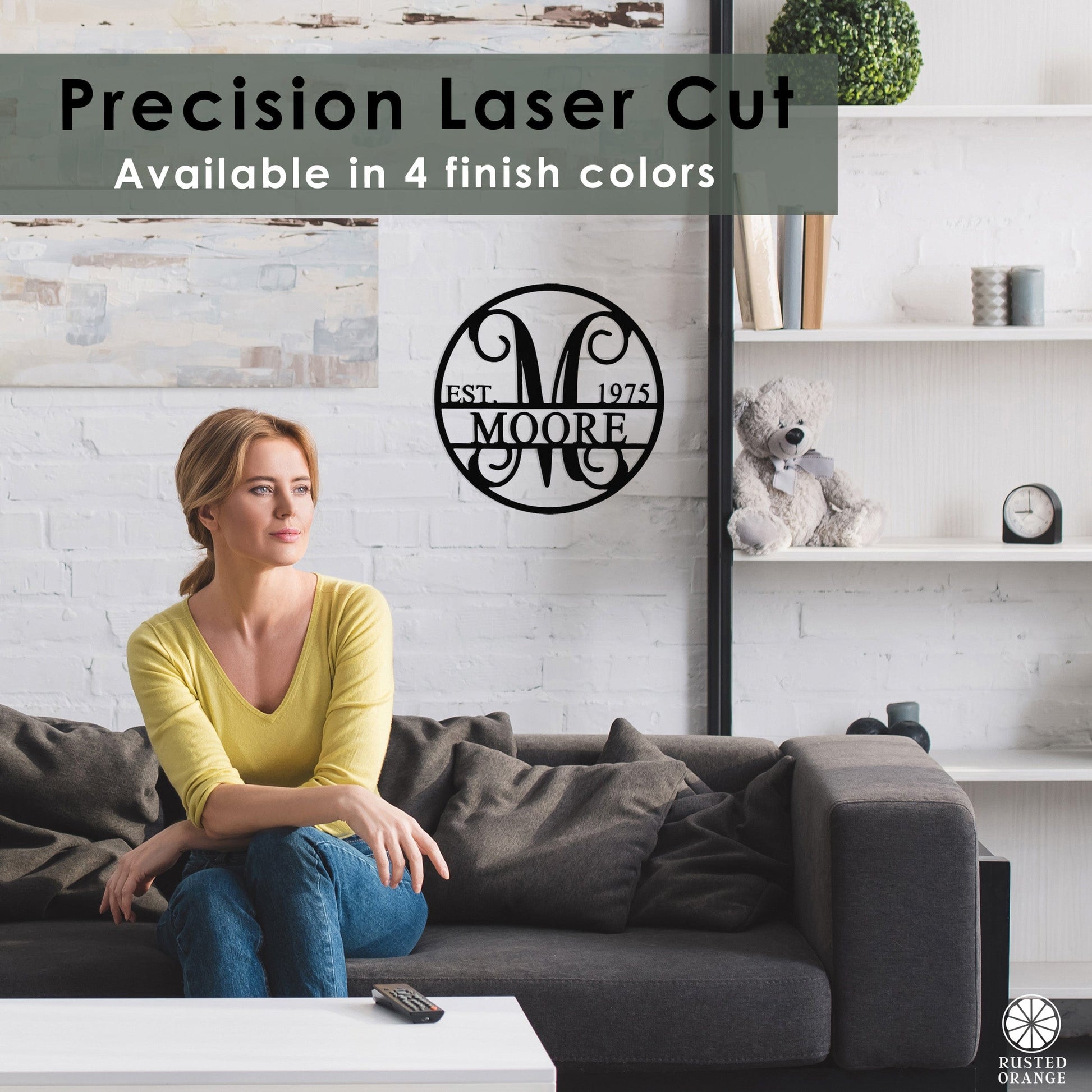 Discover the quintessential addition to your home with our Established Circle Name and Date Monogram, a bespoke piece of art that beautifully commemorates your family's legacy. Meticulously crafted from high-quality metal, this product is not just a sign; it's a statement. Personalize it to perfection with your chosen letter, name (up to 13 characters), and a pivotal 4-digit year, rendering it a unique emblem of your family's history. Our monogram sign comes in an array of finishes: raw steel for those who prefer a hands-on approach to sealing, as well as black, silver, and white powder coats that promise both rust and weather resistance. This versatility ensures your monogrammed metal wall art remains as enduring as the bond it represents, whether displayed as a proud monogram porch decor or a distinguished name plaque for your wall. With sizes ranging from 12 to 24 inches in diameter, our monogram signs for home decor can adapt to any setting, echoing your personal style while heralding your family's name. The design, bold and in all caps, captures attention and cements your presence. Although it stands without the need for a wreath, its impact is undiminished, making it a perfect alternative to traditional monogram door wreaths or as an eye-catching monogrammed door hanger. Ideal for both indoor elegance and outdoor grandeur, these metal initials letters and metal monogram letters for outdoors are crafted to withstand the elements, ensuring that your family monogram sign remains a lasting fixture. Whether you're looking to add a touch of sophistication to your home with metal letters decor or seeking the perfect monogram gifts for home, our Established Circle Name and Date Monogram marries durability with design, making it an unparalleled choice for those who cherish both style and substance.