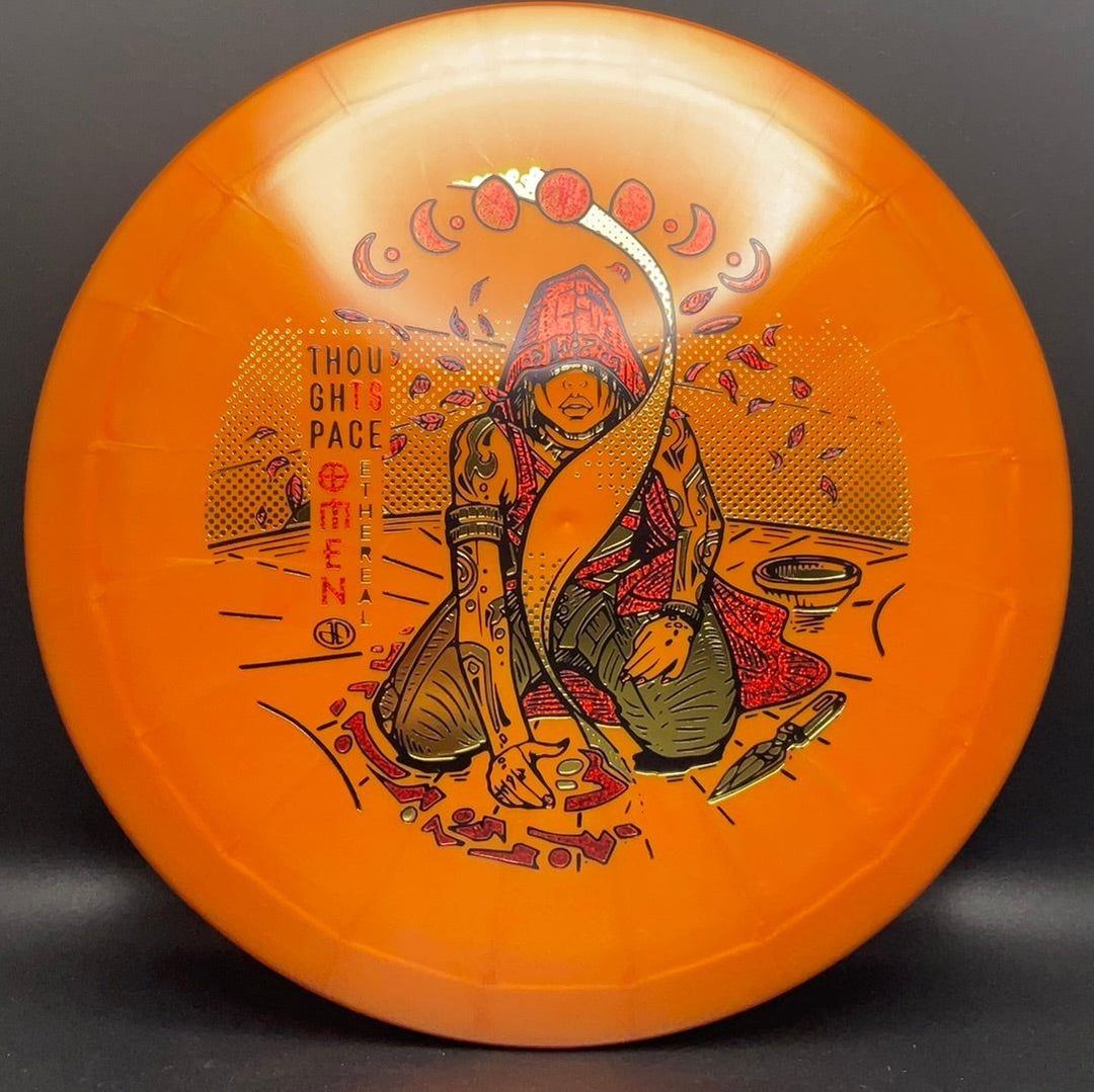 The Omen is an overstable 9-speed driver from Thought Space Athletics. If you need a solid, hard fade when throwing side-arm, backhand, or overhead, you can always count on the Omen. It is an excellent overstable utility driver and a pre-level, high-performance disc for power throwers.