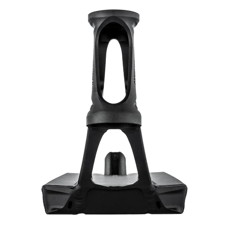 Hundreds of hours of simulations were carried out to obtain the most effective geometry possible, giving it 33% more resistance to the banana effect, as well as 40% more resistance on the neck. Now made from 6082 aluminium (slightly stronger than the usual 6061). Now compatible with 120mm diameter wheels, it comes with a brand new fender for added lightness.