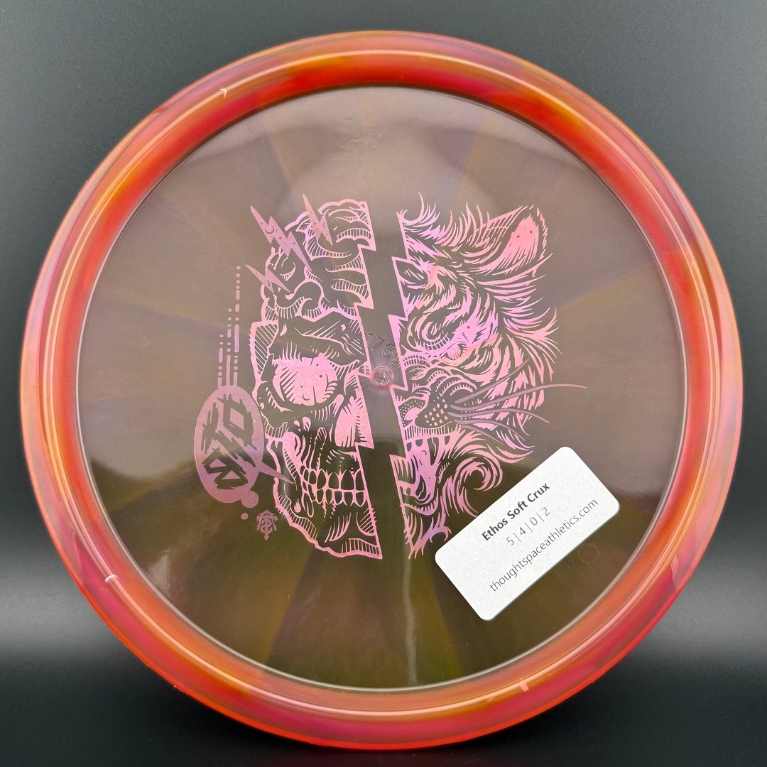 Ethos plastic from Thought Space Athletics is a premium blend and their most durable. It's see through and also the most overstable right out of the box. Plan on keeping this disc around for a long time because it will take a long time to break in and become flippy.