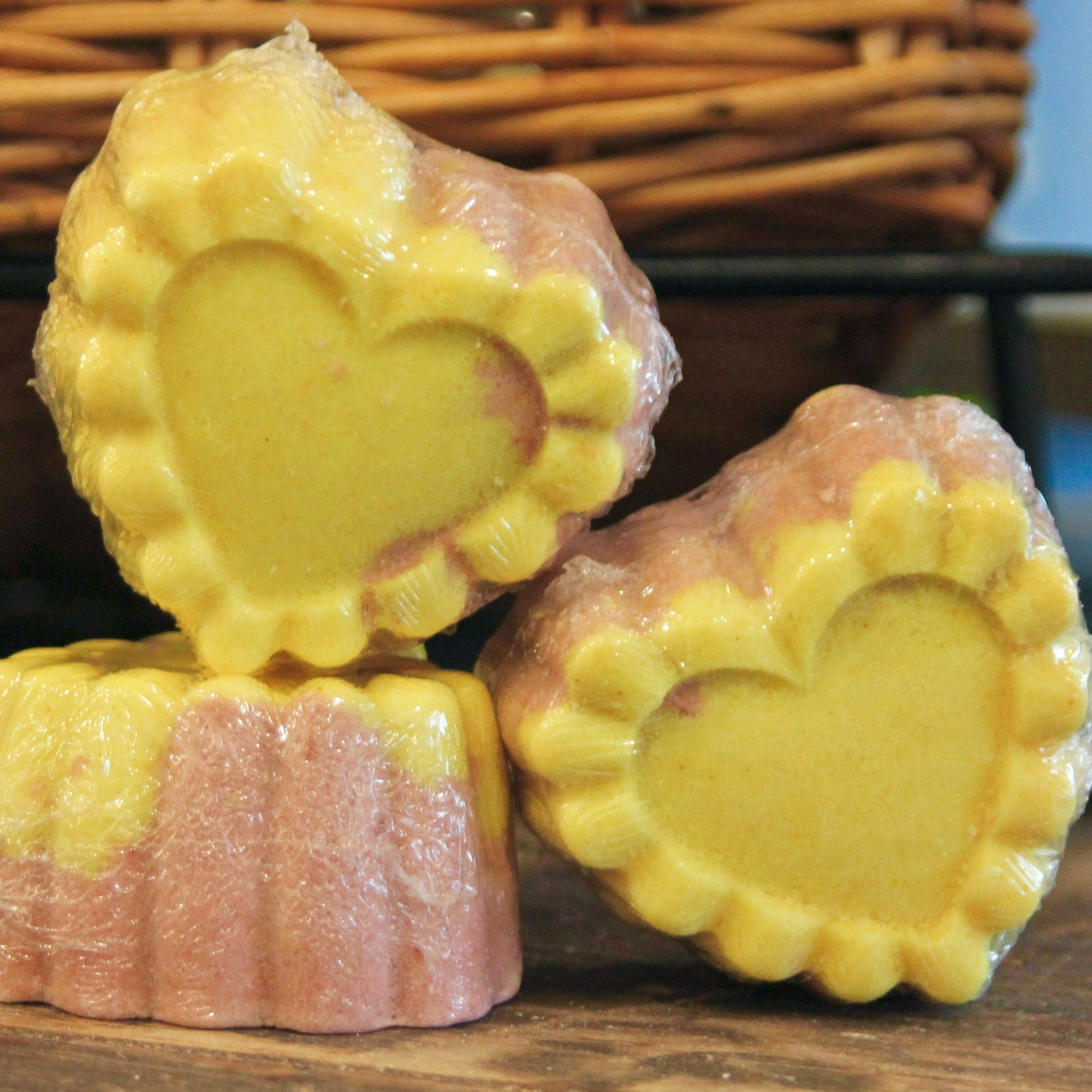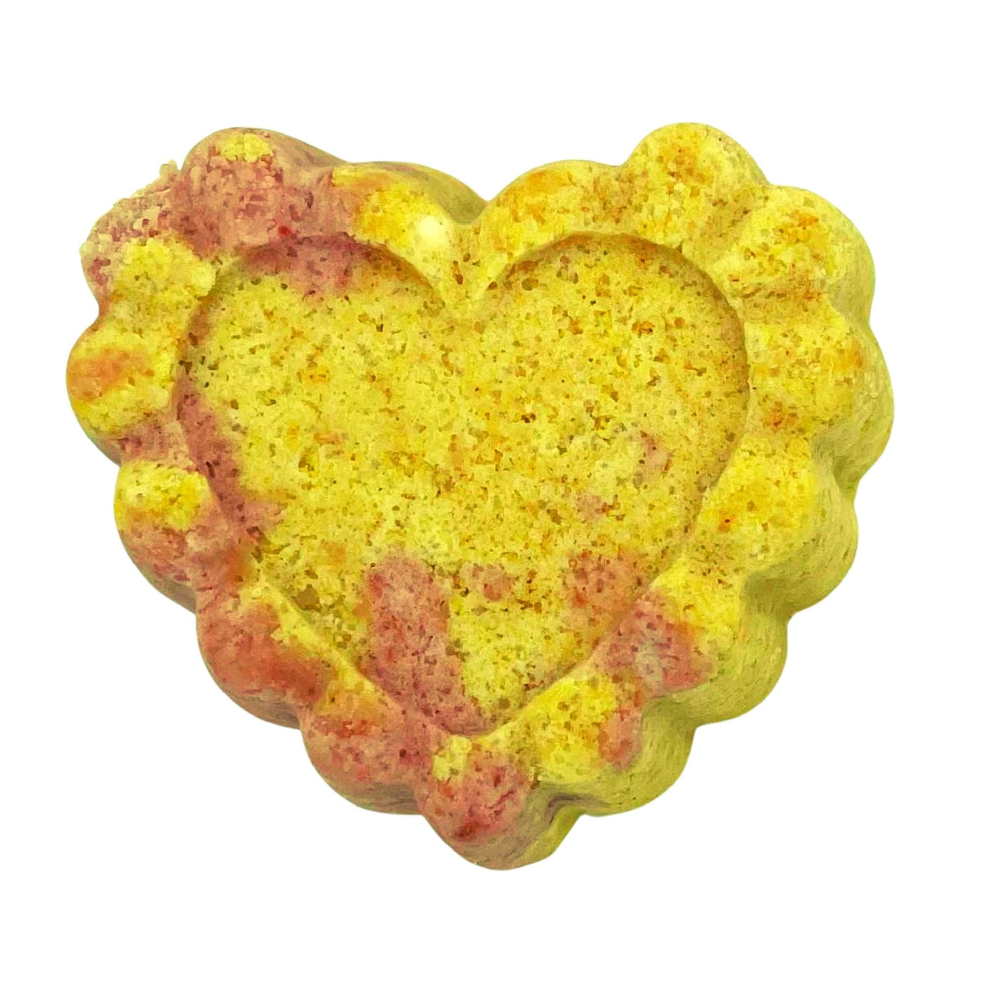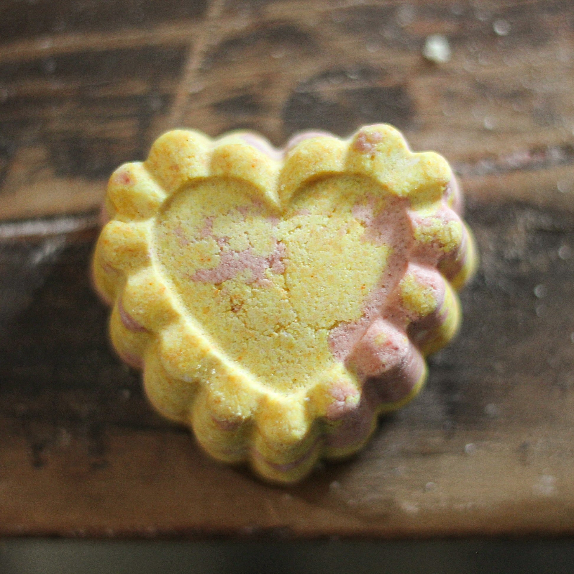 Our Euphoria Bomb creates the perfectly scented bubble bath for one or two! Made in a convenient heart-shaped puck, they are perfect for romantic getaways without a possible mess all over your luggage. Just put half or all of the heart at water level under hot running water to experience an initial fizzy bath bomb that turns into a luxurious bubble bath! Each one is handmade with moisturizing shea and mango butters to soften and pamper the skin, and 100% pure essential oils that scentually perfumes the skin. Like all of our bath and body products, they are completely natural, use only sustainable ingredients, and are gluten-free. These are also vegan. The scent is an earthy floral.