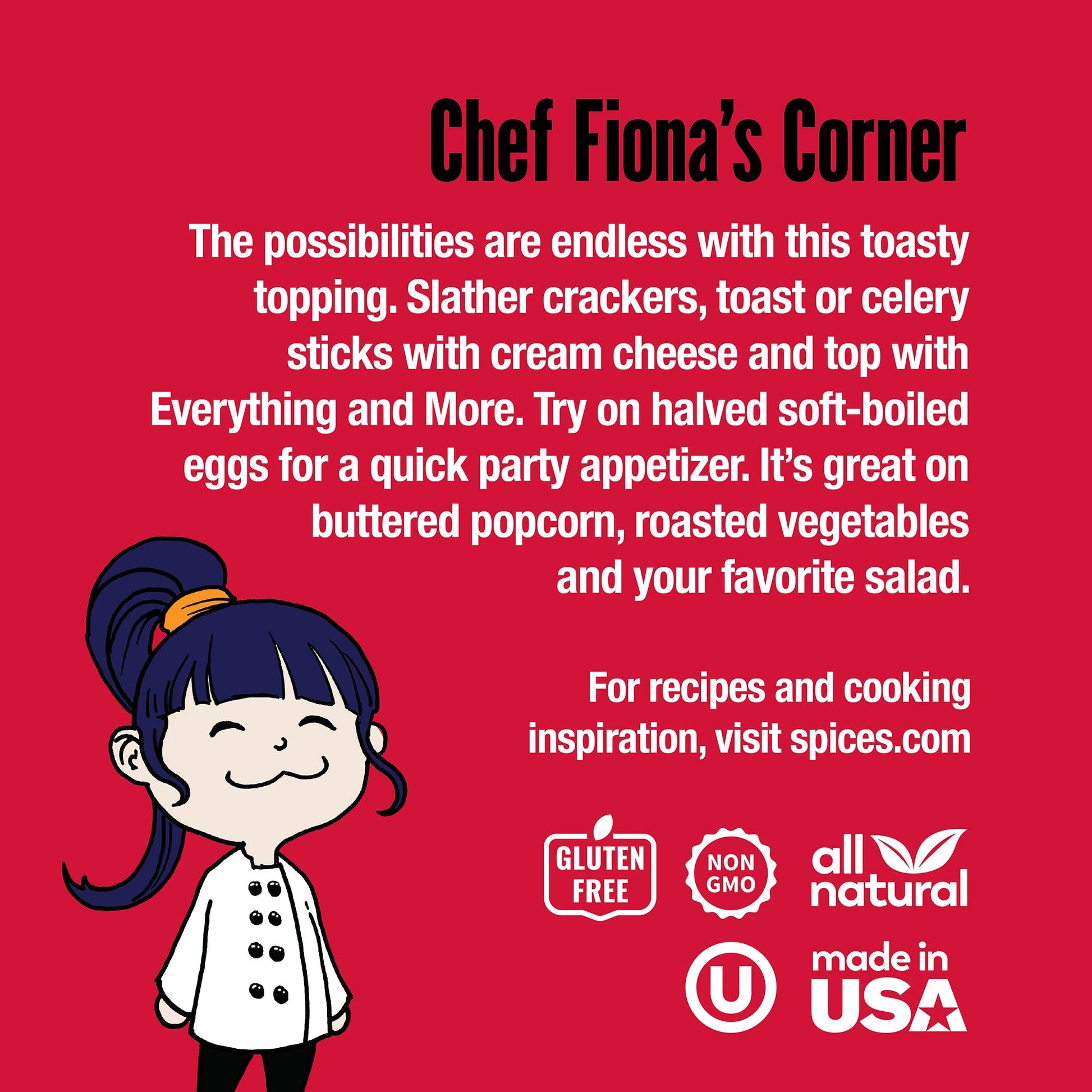 EVERYTHING BUT THE BAGEL: The happy accident (or mysterious experiment?) that took bagels to the next level in the 1980s is now an everything savory blend distinguished by extra crunchy Hudson Valley Salt and a hint of chili spice. Packaged in a convenient shaker jar, this seasoning is a must for the pantry.