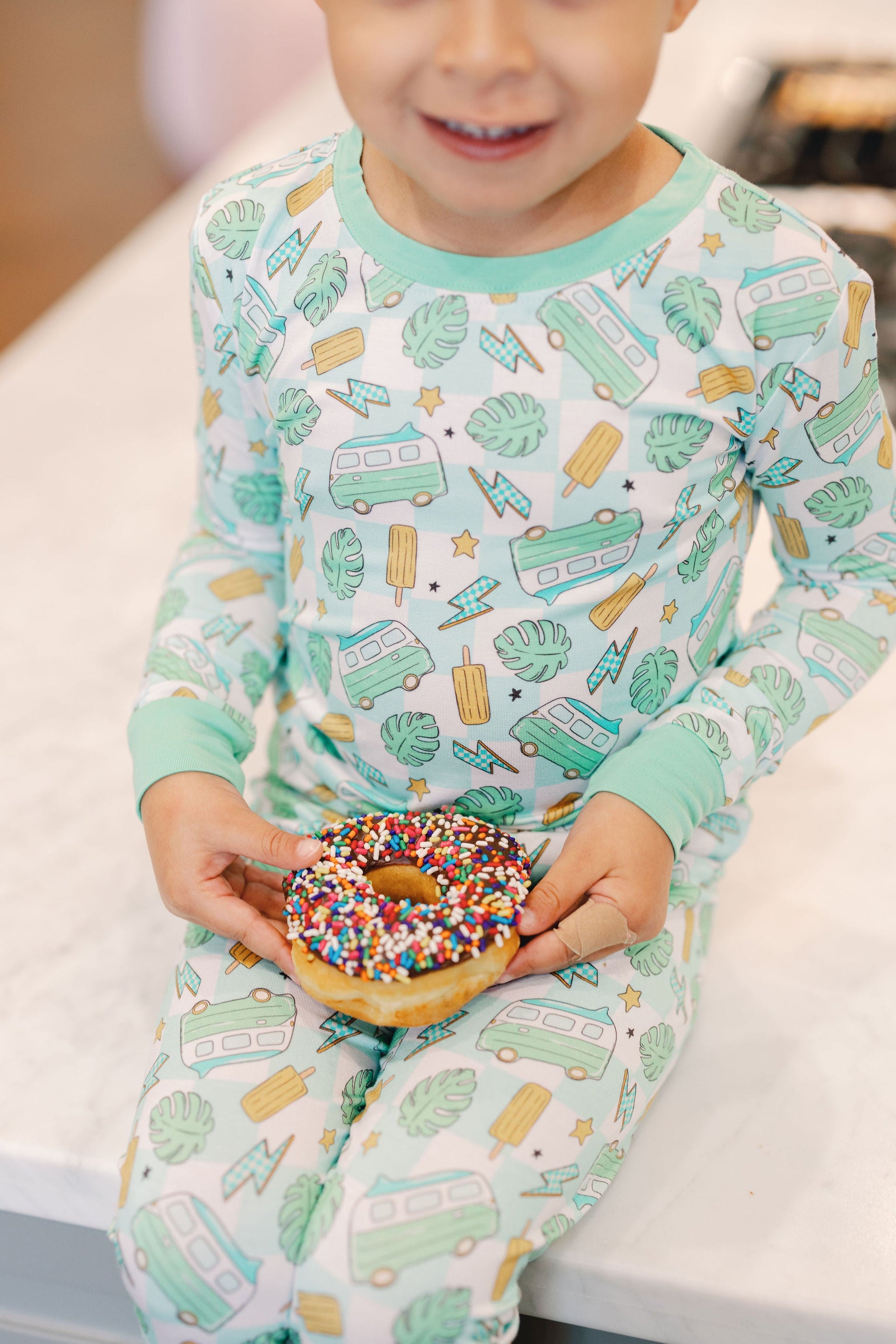 Get ready to check out for summer with our exclusive dream set! Made from bamboo material, this long sleeve set features a fun coastal van print that's perfect for those cool summer nights. Add a touch of quirk and humor to your wardrobe with this one-of-a-kind set.